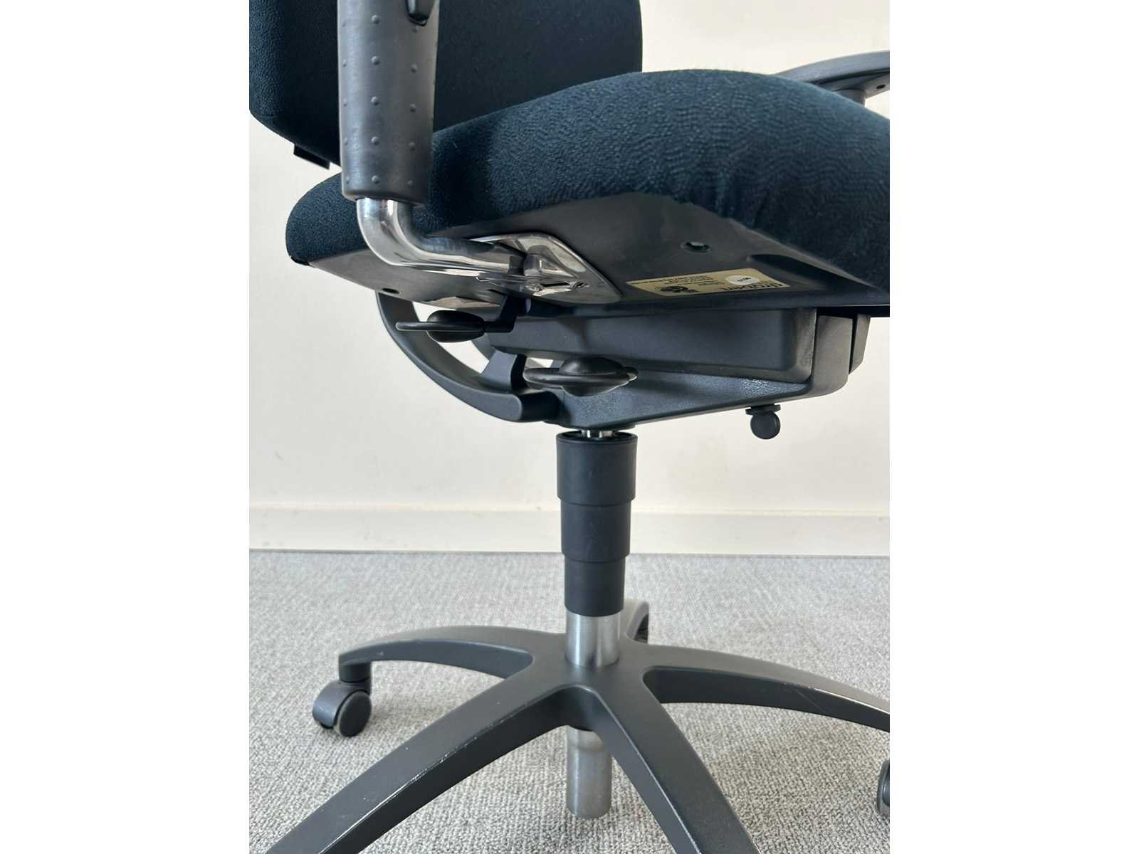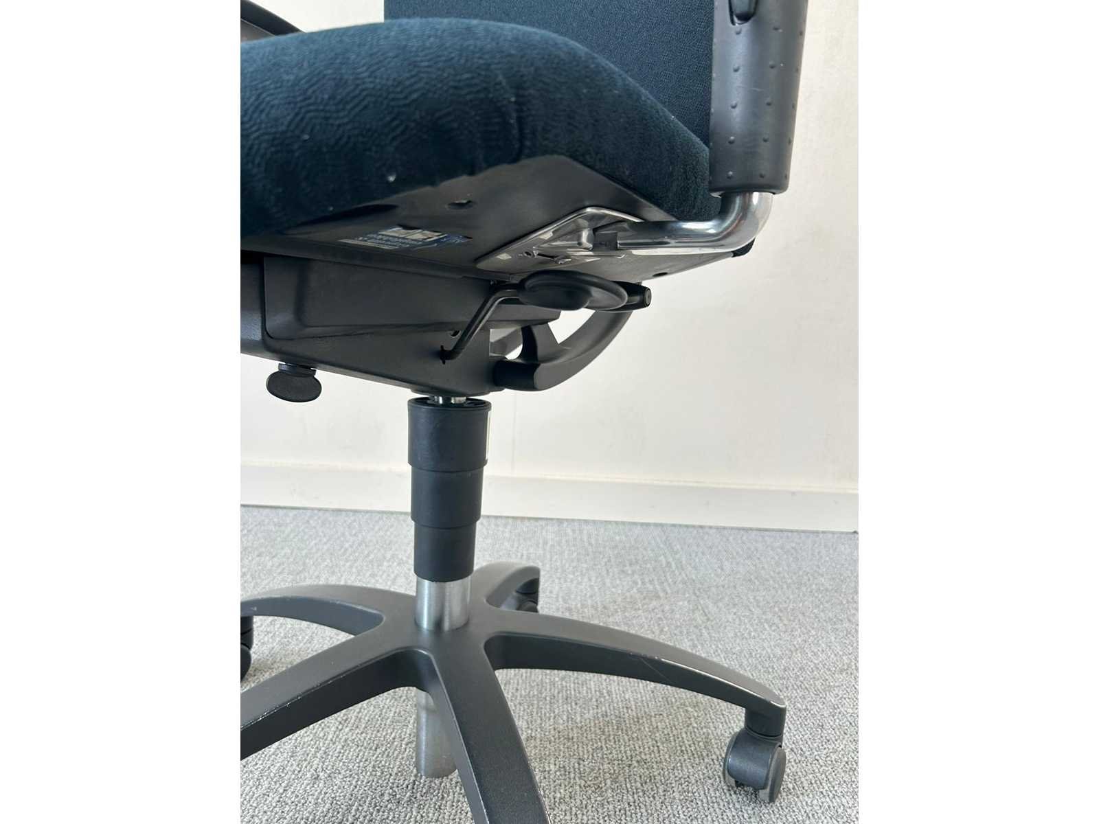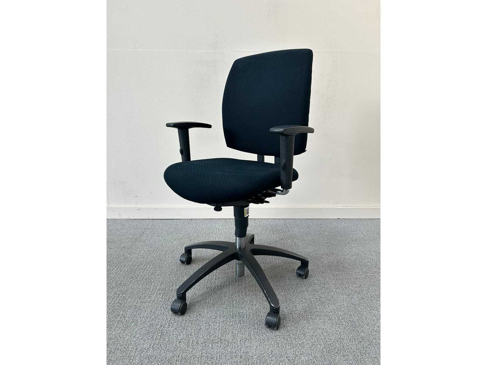 Kenmerk Omschrijving Type stoel Ergonomische bureaustoel met verstelbare armleuningen Zitting Stoffen bekleding, hoogteverstelbaar Rugleuning Gebogen ergonomische rug, kantelbaar, met kunststof achterzijde Armleuningen In hoogte verstelbaar Mechaniek Synchroonmechanisme met gewichtsregeling Onderstel 5-teens stervoet met wielen Wielen Dubbele softwielen geschikt voor tapijt of harde vloeren Hoogte stoel ca. 90–110 cm (instelbaar) Zithoogte ca. 42–55 cm Breedte ca. 65 cm Diepte ca. 65 cm Gewicht ±15 kg Gebruikte staat met gebruikssporen. Op de achterzijde van de rugleuning zijn enkele krassen zichtbaar (zie foto). Mechaniek functioneel, wielen en gasveer werken normaal. Nee Merk: DRABERT Type: Entrada Kleur: donker groen Gewicht: 20kg Materiaal: textiel