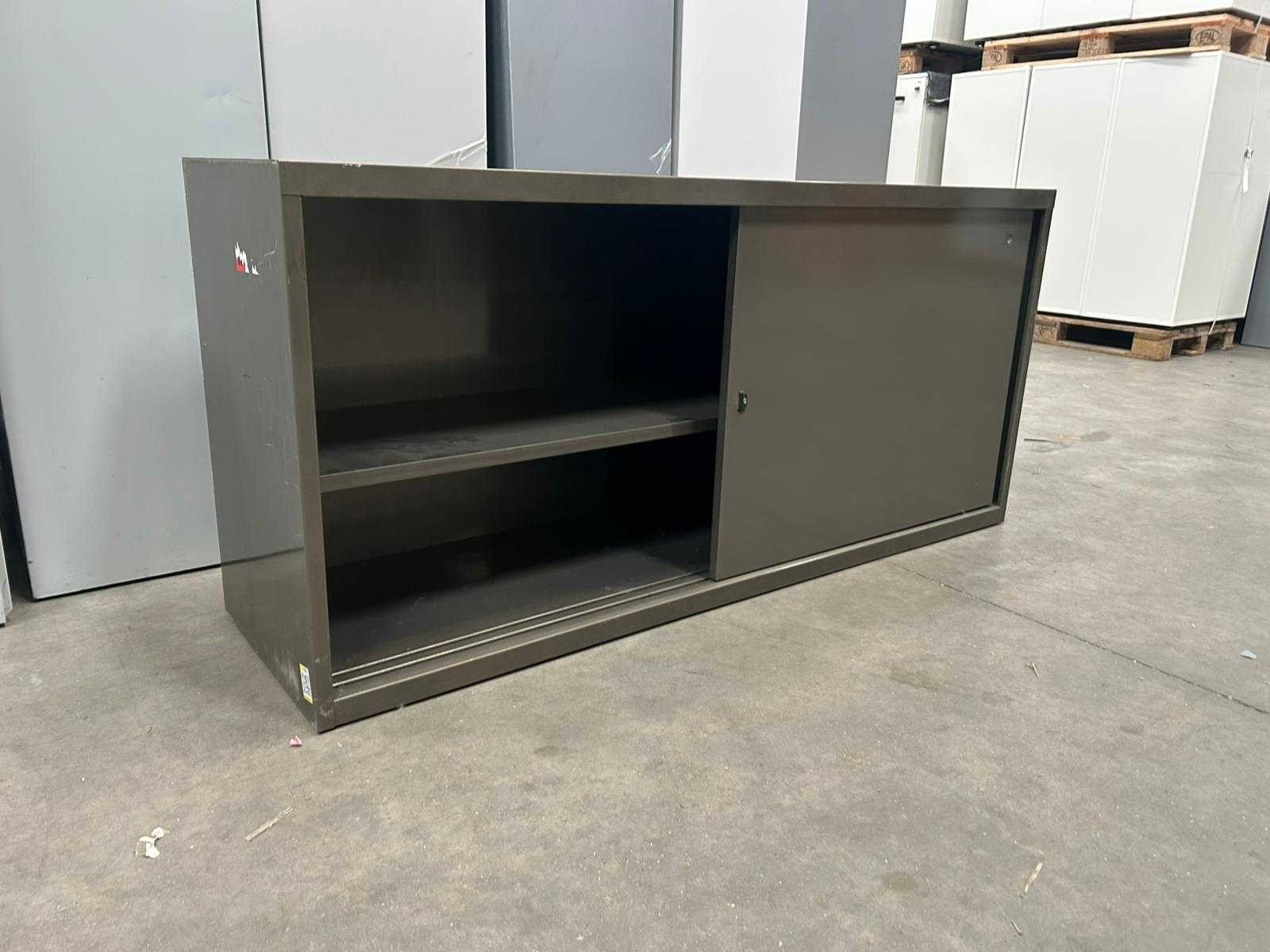 Set van 4 lage schuifdeurkasten in het olijf grijs. Enkele legger per kast. Nee Type: Schuifdeurkast Kleur: Olijf Gewicht: 75kg Breedte: 160cm Hoogte: 74cm Materiaal: Metaal Diepte: 45cm