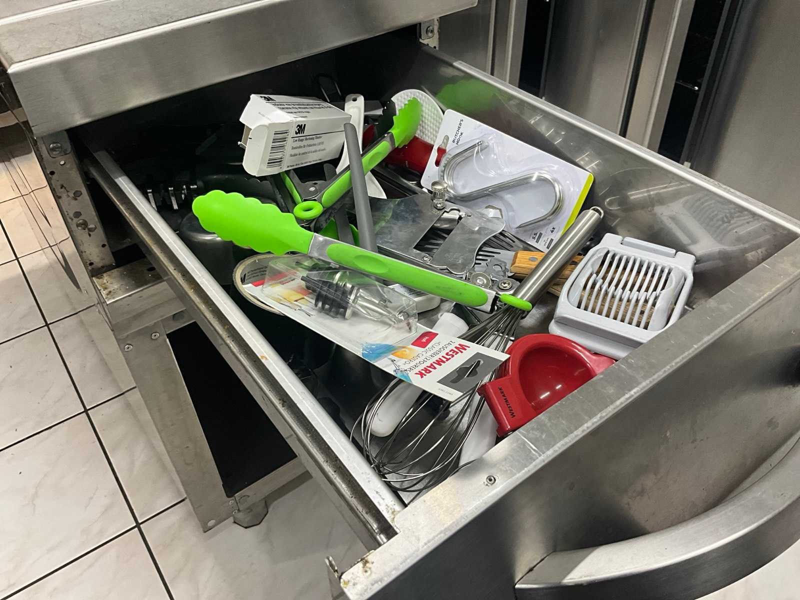 Voorzien van 1 lade inhoudende diverse keukengerei Nee Merk: Fagor Afmeting l: 420mm Afmeting b: 950mm Afmeting h: 840mm