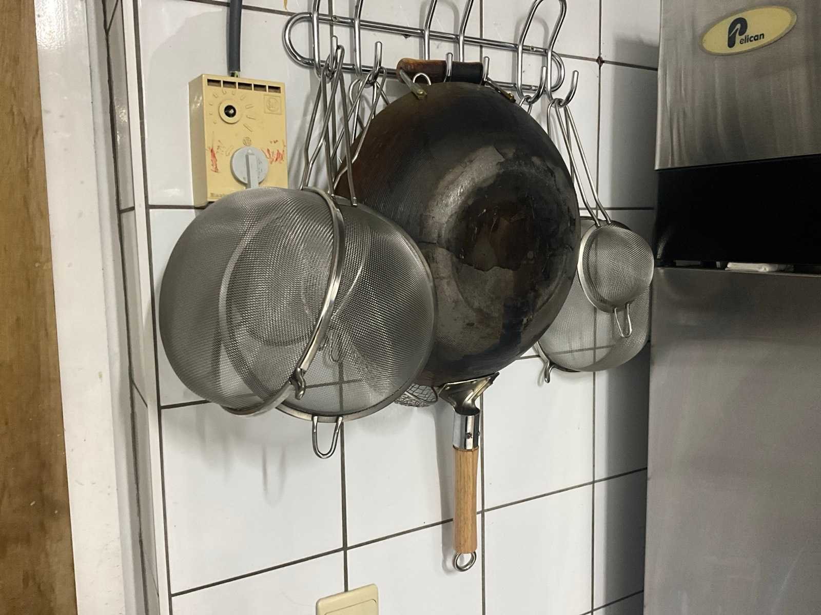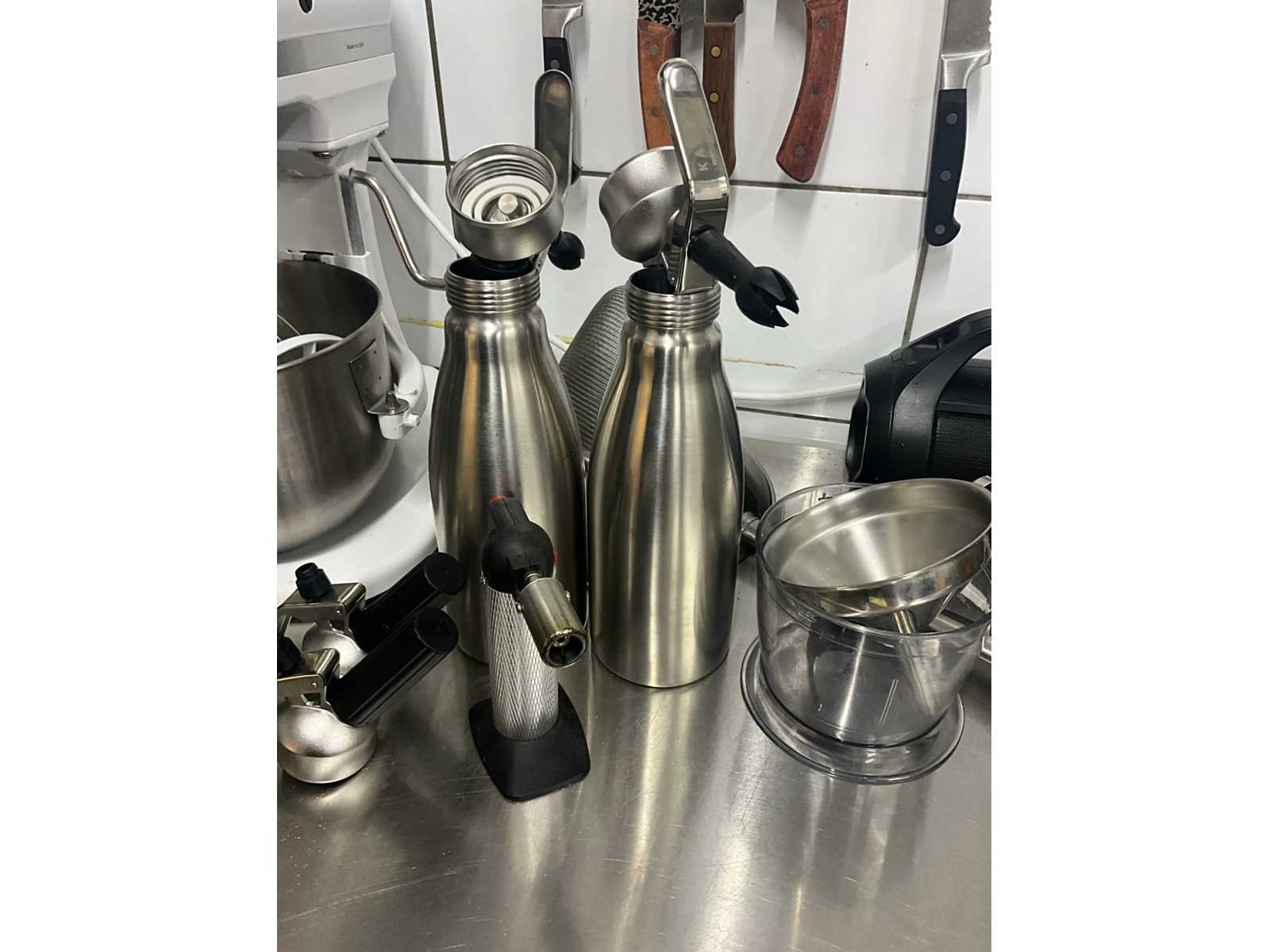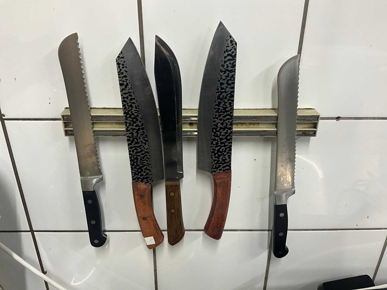 Waaronder 5 diverse keuken messen, 7 Gardes, 6 schuimspanen, 2 pollepels, 1 grote industriële kunststof slazwierder, 7 diverse kunststof snijplanken, 6 zeven en enige diverse mengkommen, Waaronder liggende in 2 metalen opbergrekken voorzien van 6 leggers, Afgifte volgens aanwijzing, uitgezonderd genummerde kavels Nee Product type: Partij