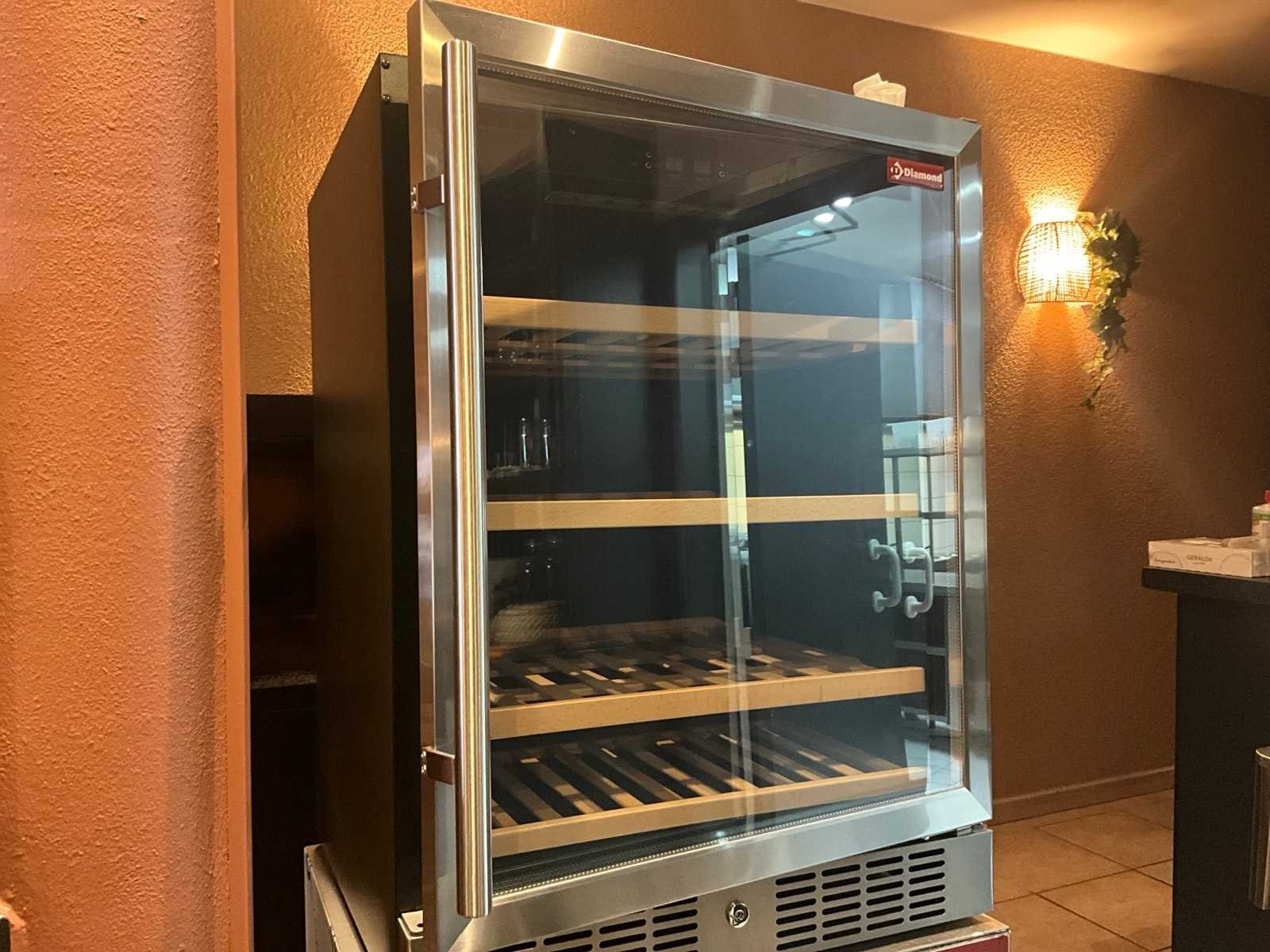 Voorzien van 4 houten leggers Nee Merk: Diamond - Tefcold Type: TWF200-S Digitale uitlezing: true Regelbare thermostaat: true Aansluiting: 230V Vrijstaand: true