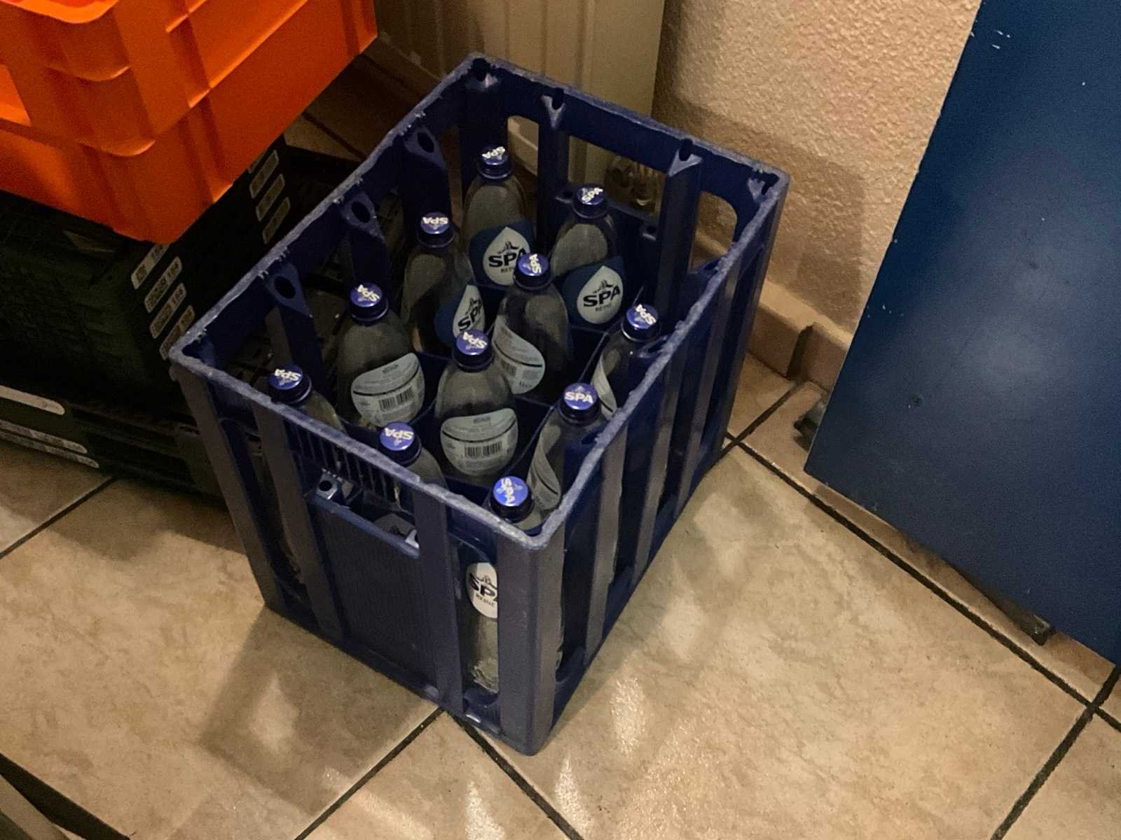 Waaronder opklapbaar en waaronder 15x getekend EUROPOOL SYSTEM, Compleet met 1 bak leeggoed inhoudende 11 lege flessen SPA 1L Nee