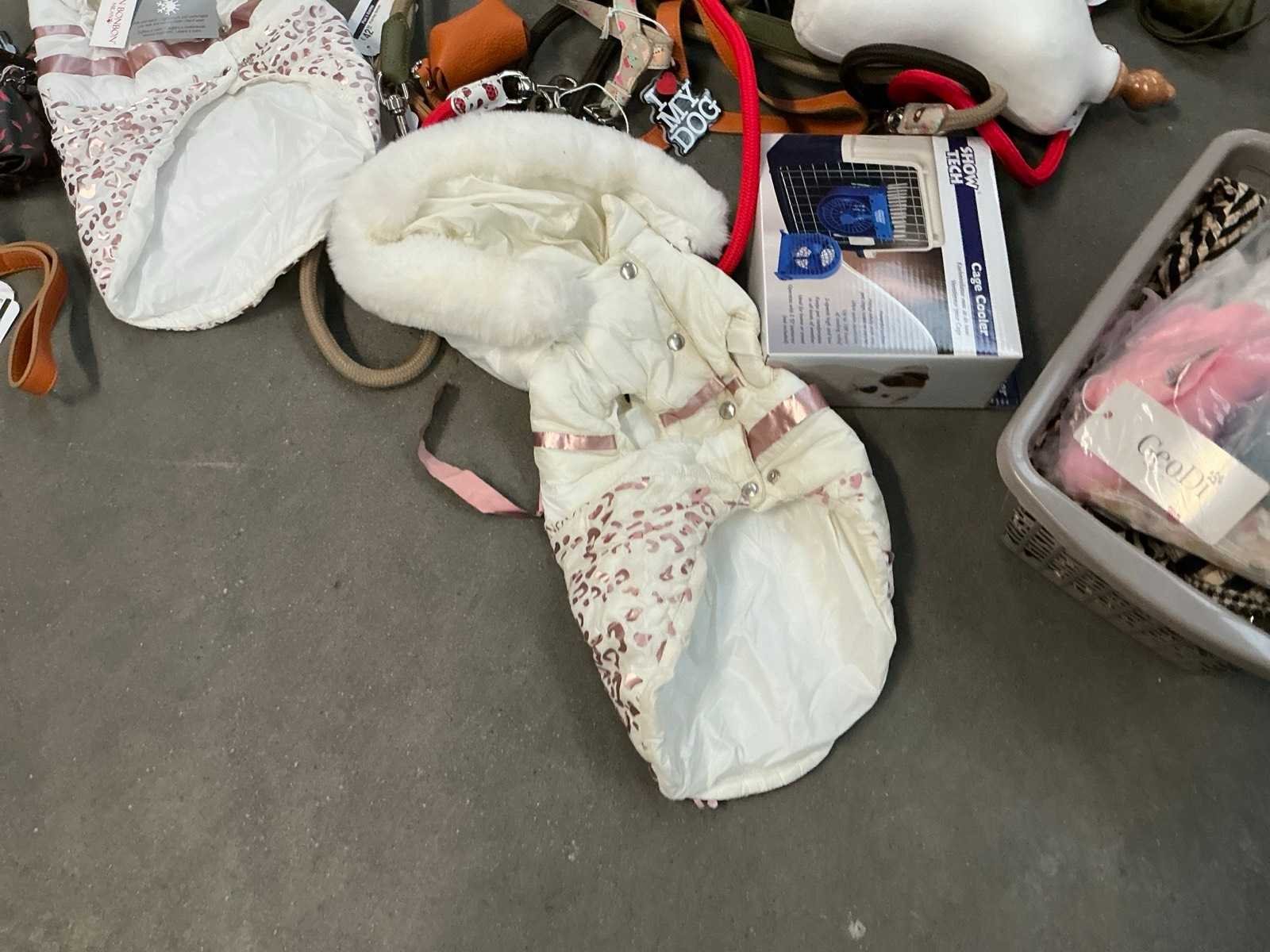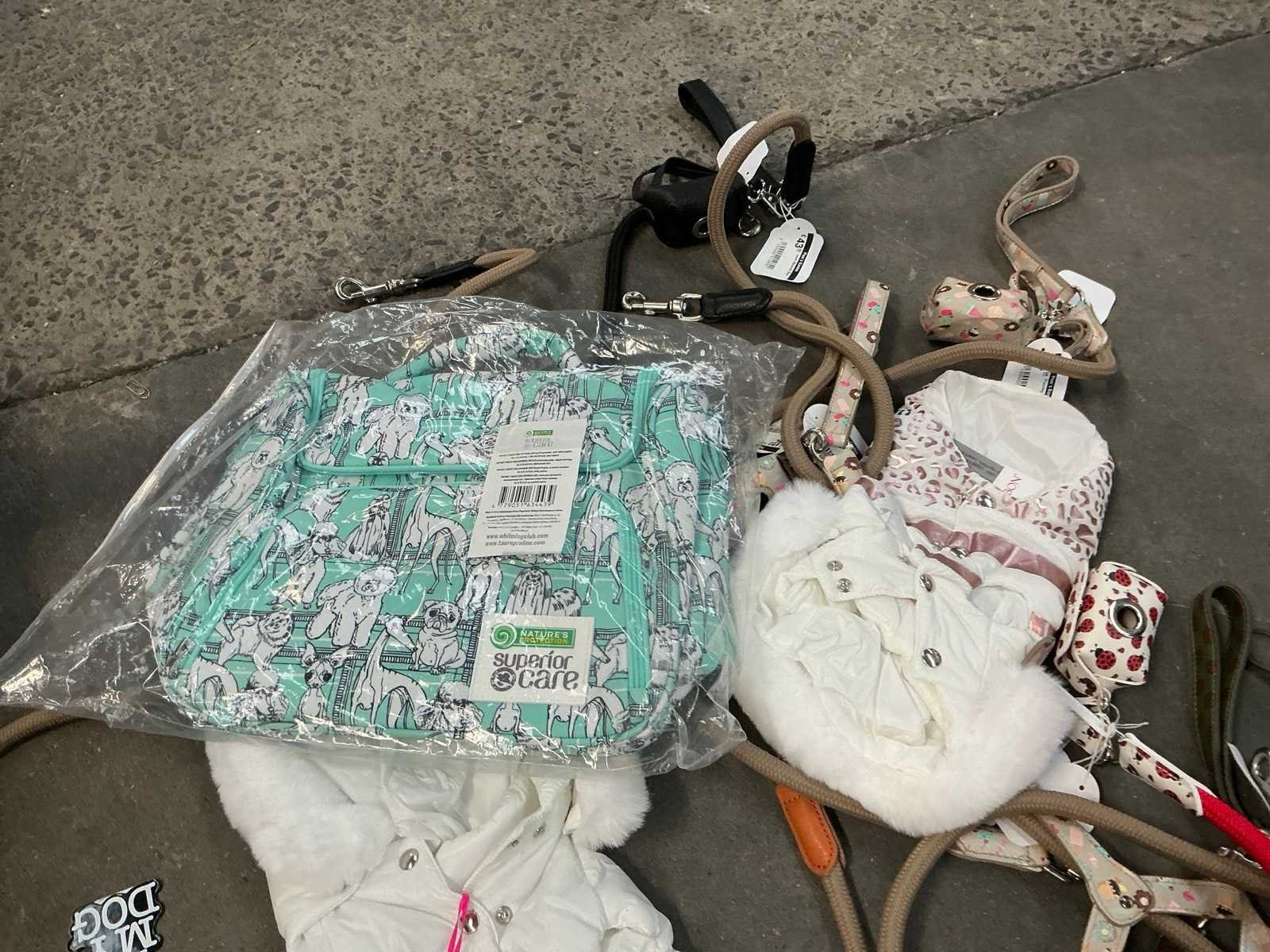 Waaronder MON BONBON, GEODI, ILoveMyDog, NATURE’S PERFECTION, SHOWTECH,.. waaronder diverse leibanden, harnassen en enige gevoerde jassen, compleet met benchkoeler, groomer rugzak, 8 kleine bustes en microvezeljas voor teckel, in diverse uitvoeringen, kleuren en types, liggende in 1 doos Nee