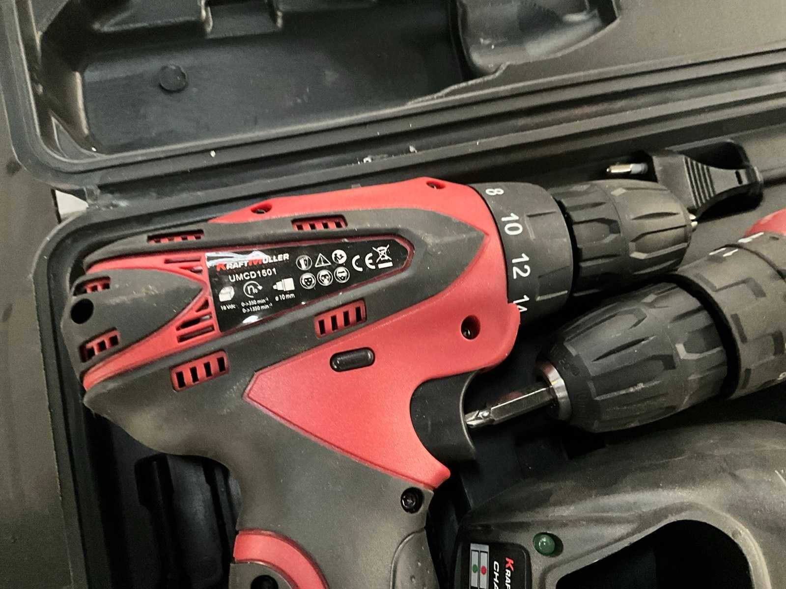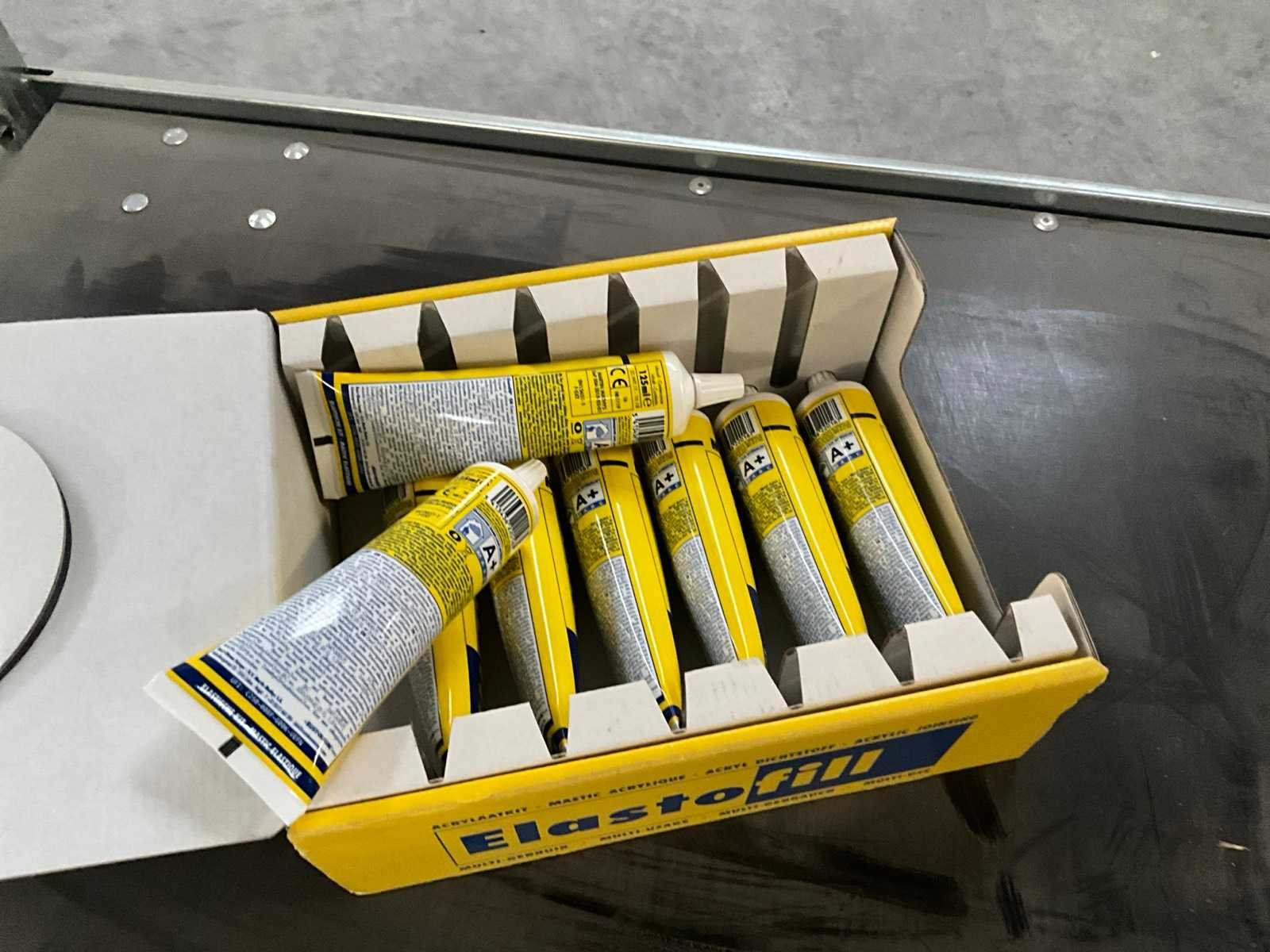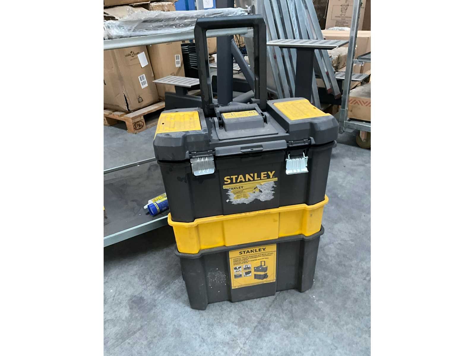 Waaronder 2x schroefboormachine KRAFTMULLER, 2x lijmtang, diverse boren, diverse waterpassen, 9x acrylaatkit ELASTOFIL, gereedschapstrolley STANLEY Nee