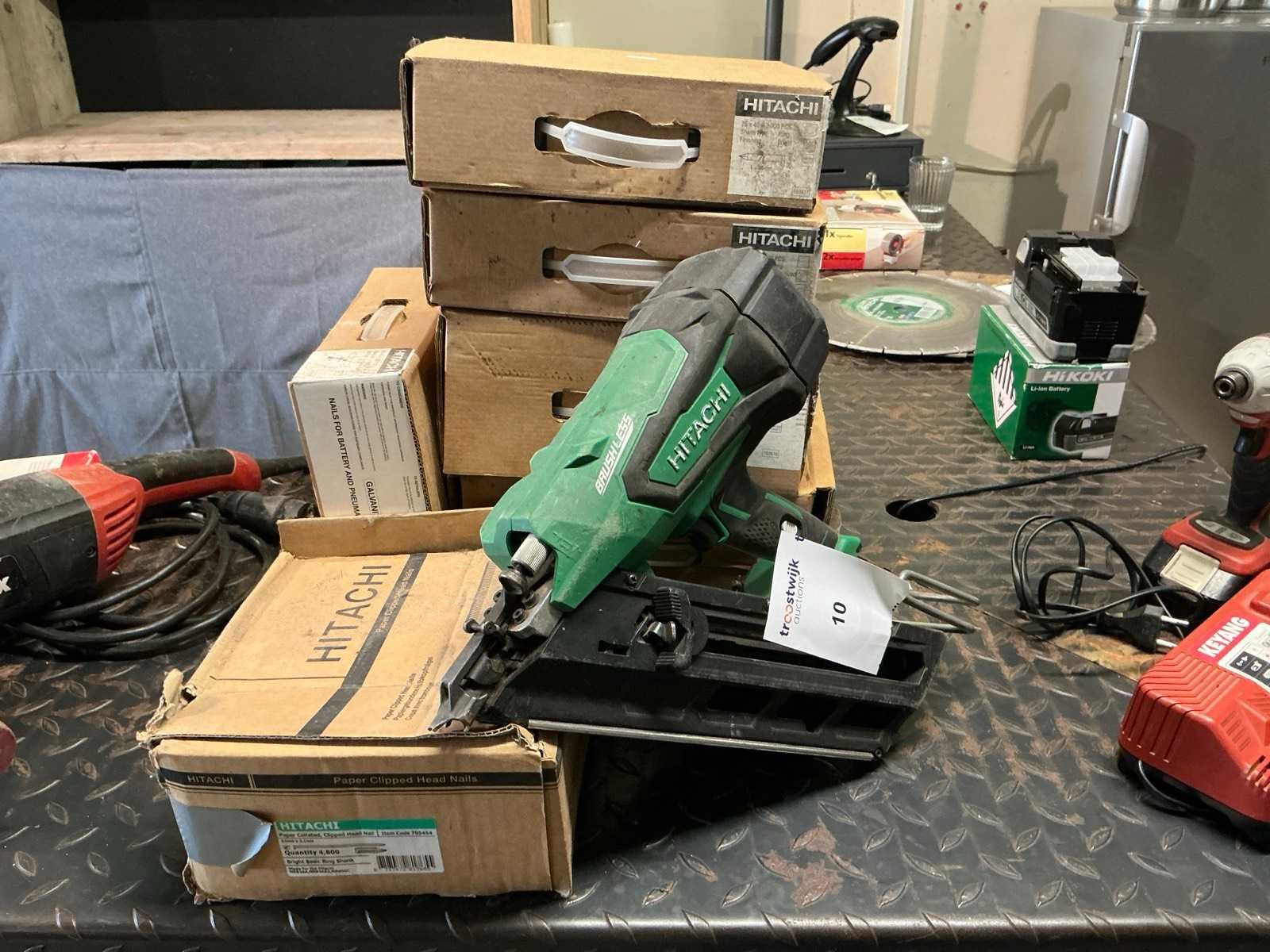 Met 6 dozen stripnagels. Zonder accu en zonder acculader. Nee Merk: Hitachi Type: NR1890DBCL Bouwjaar: 2017 Accuspanning: 18V
