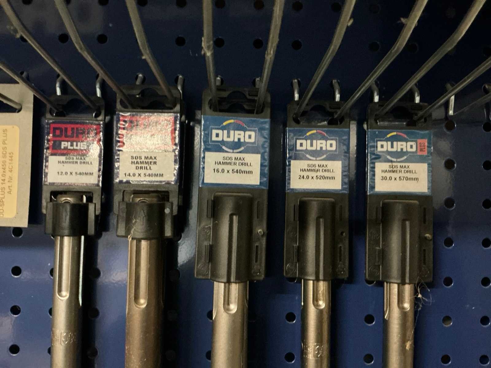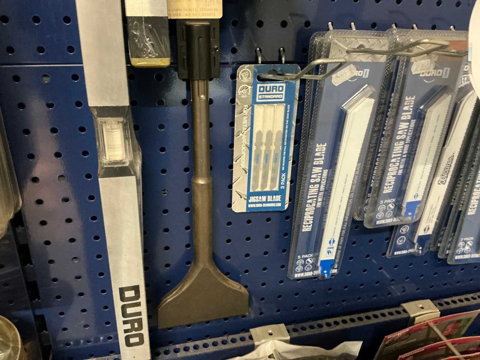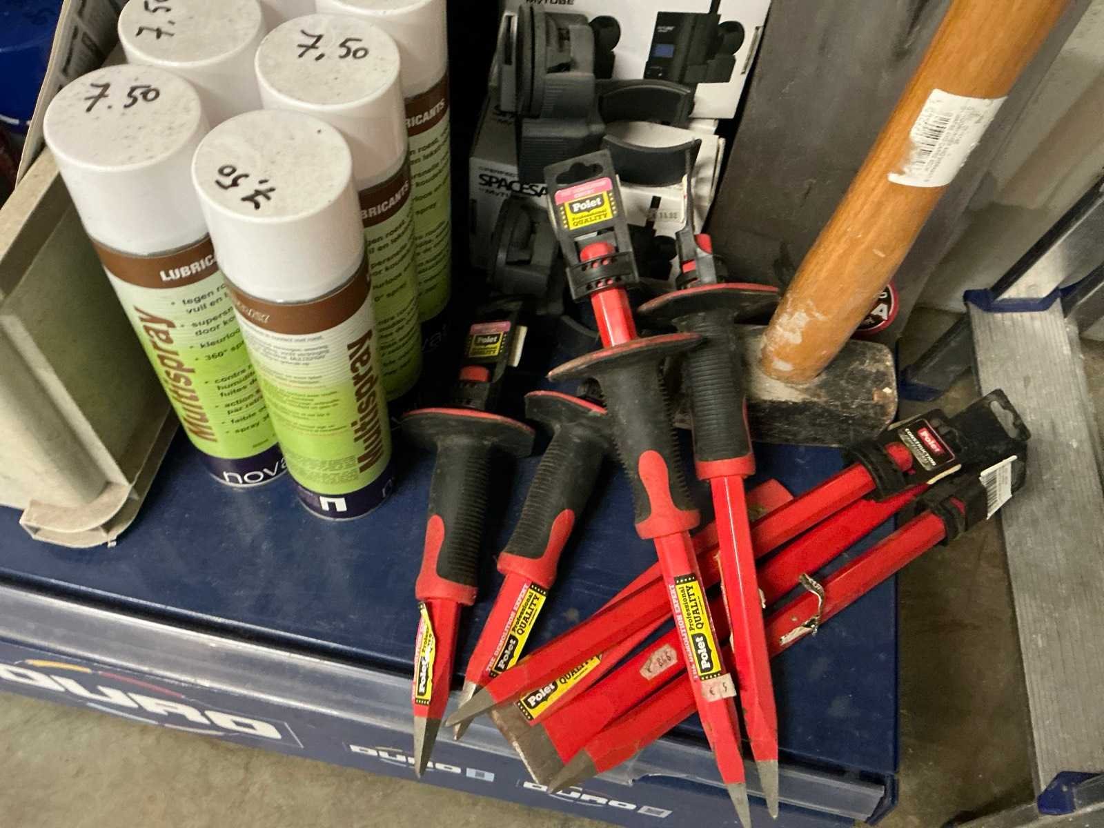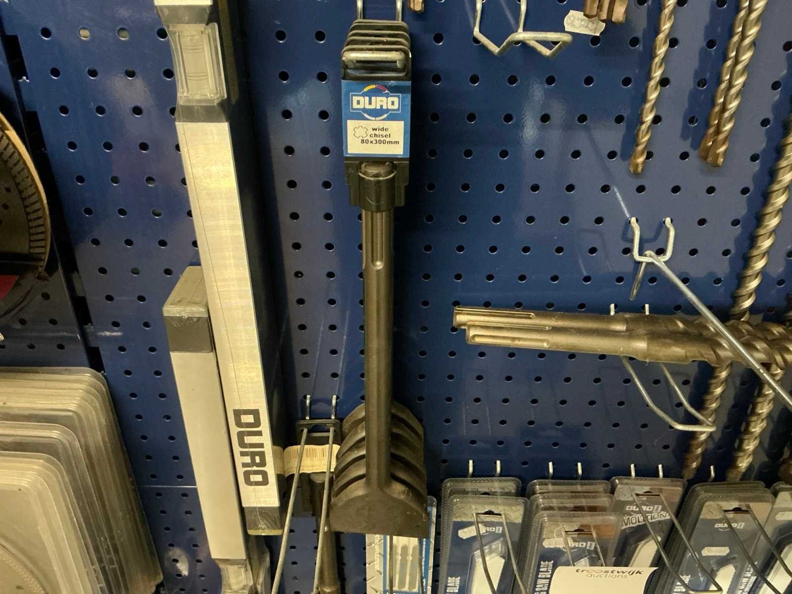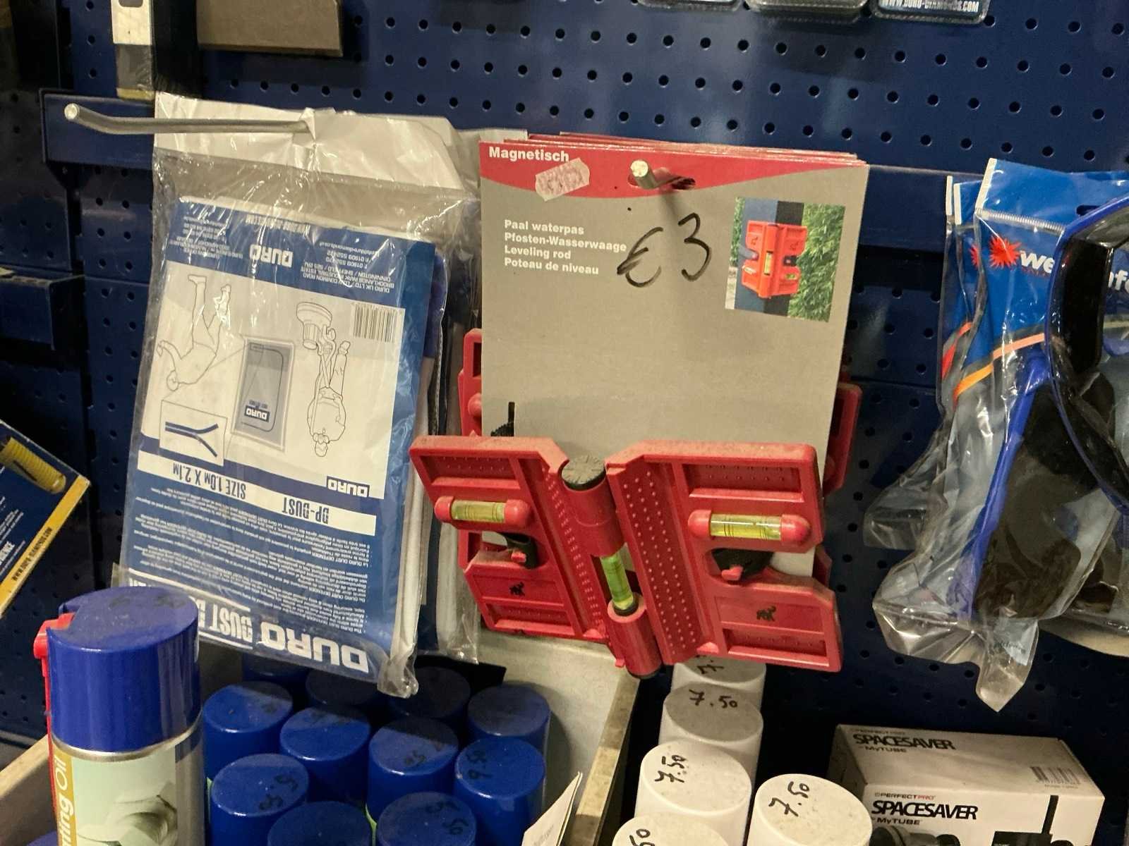 Waaronder Duro boren en beitels, Duro waterpassen, Polet beitels, paalwaterpas, Duro zaagbladen, multispray, kruipolie,… Nee