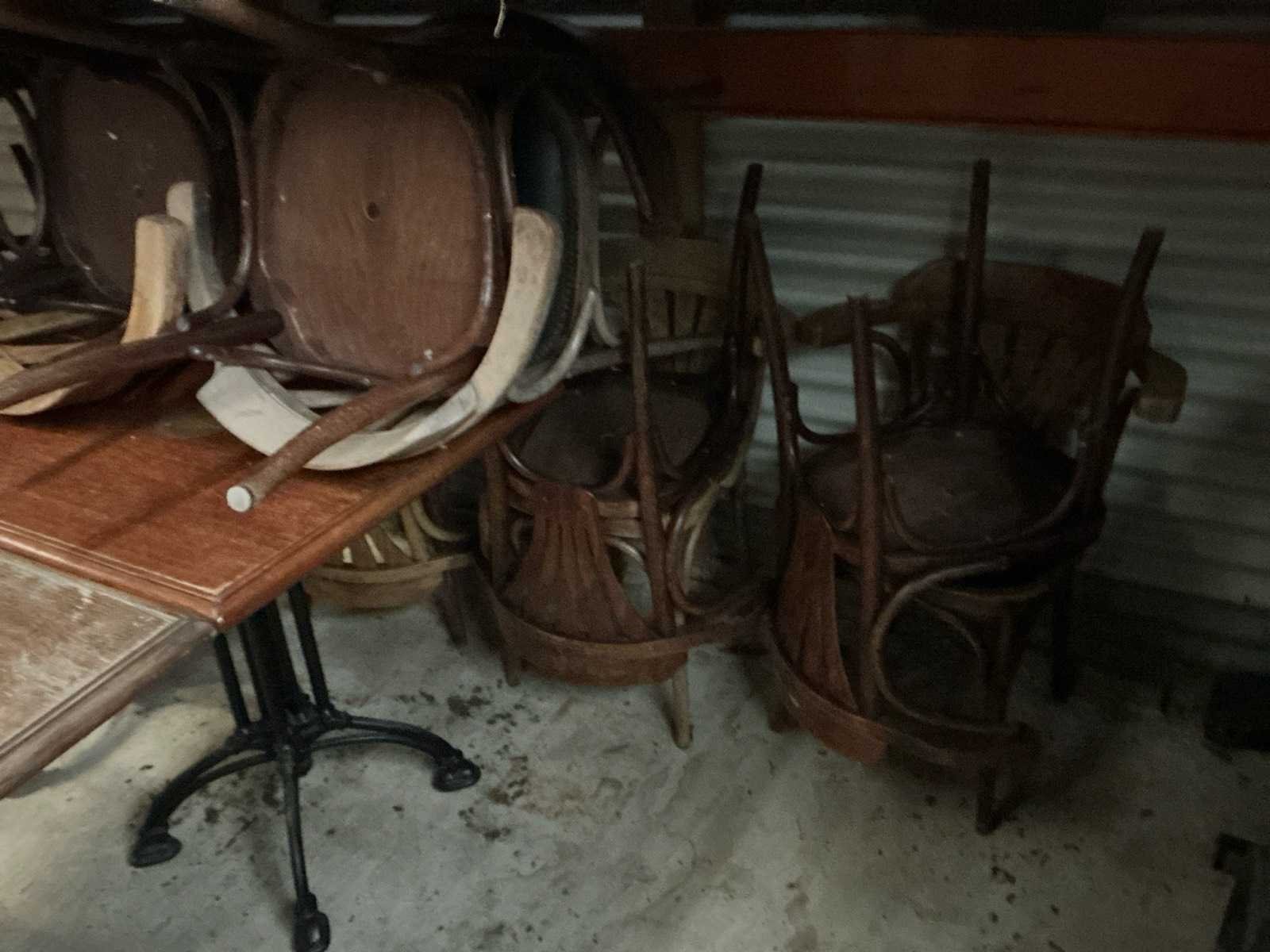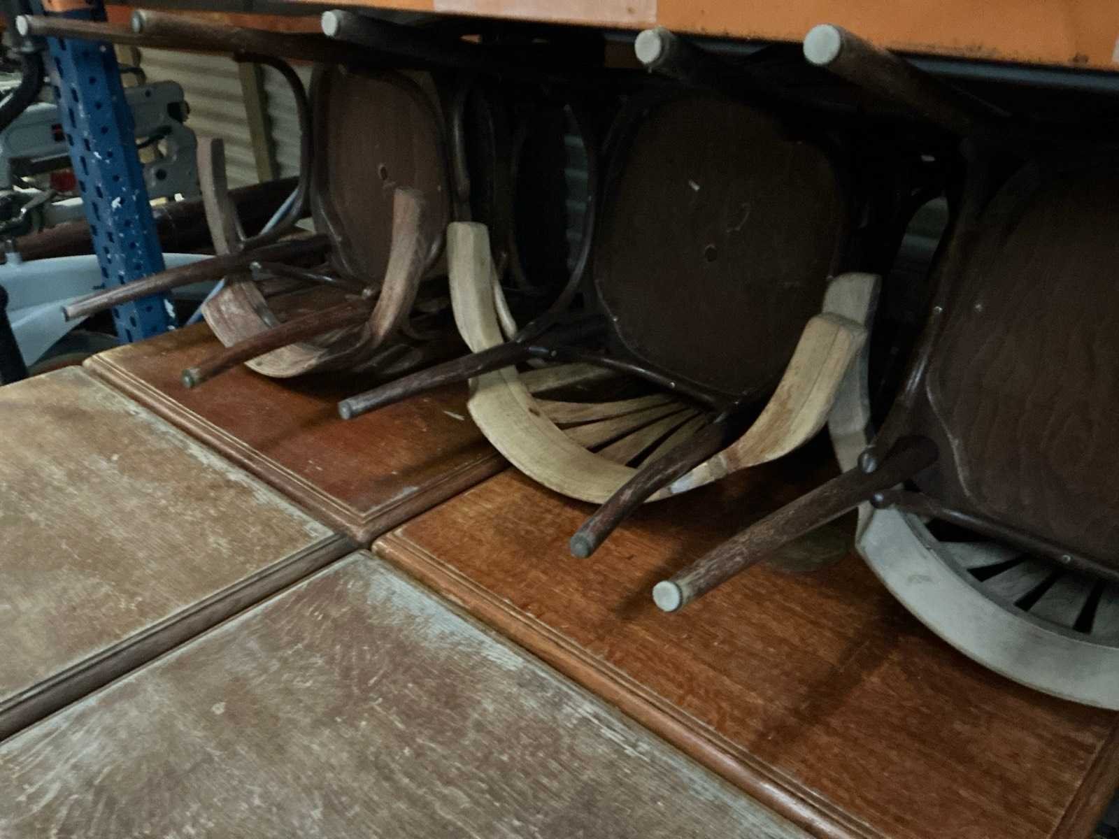 Met 16 stoelen, alsook 2 bureaustoelen. Gebruikssporen Nee Lengte: 74cm Breedte: 64cm Hoogte: 76cm