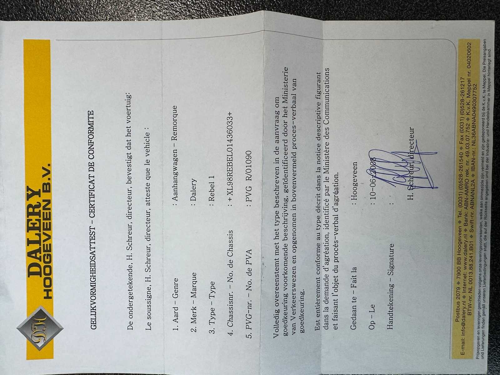 Enkelas geremde aanhangwagen Binnenafm 2m95 x 1m52 x 1m52 HTG 1300 kg Met reservewiel Aluminium velgen black Opklapbaar neuswiel Alle documenten aanwezig Nee Merk: Dalery Type: Rebel 1 Model: Gesloten Bouwjaar: 2008 Chassisnummer: XL98REBEL01436033 Aantal assen: 1 Laadbak afmeting l: 295cm Laadbak afmeting b: 152cm Ledig gewicht: 553kg Laadvermogen: 747kg Gesloten opbouw: true