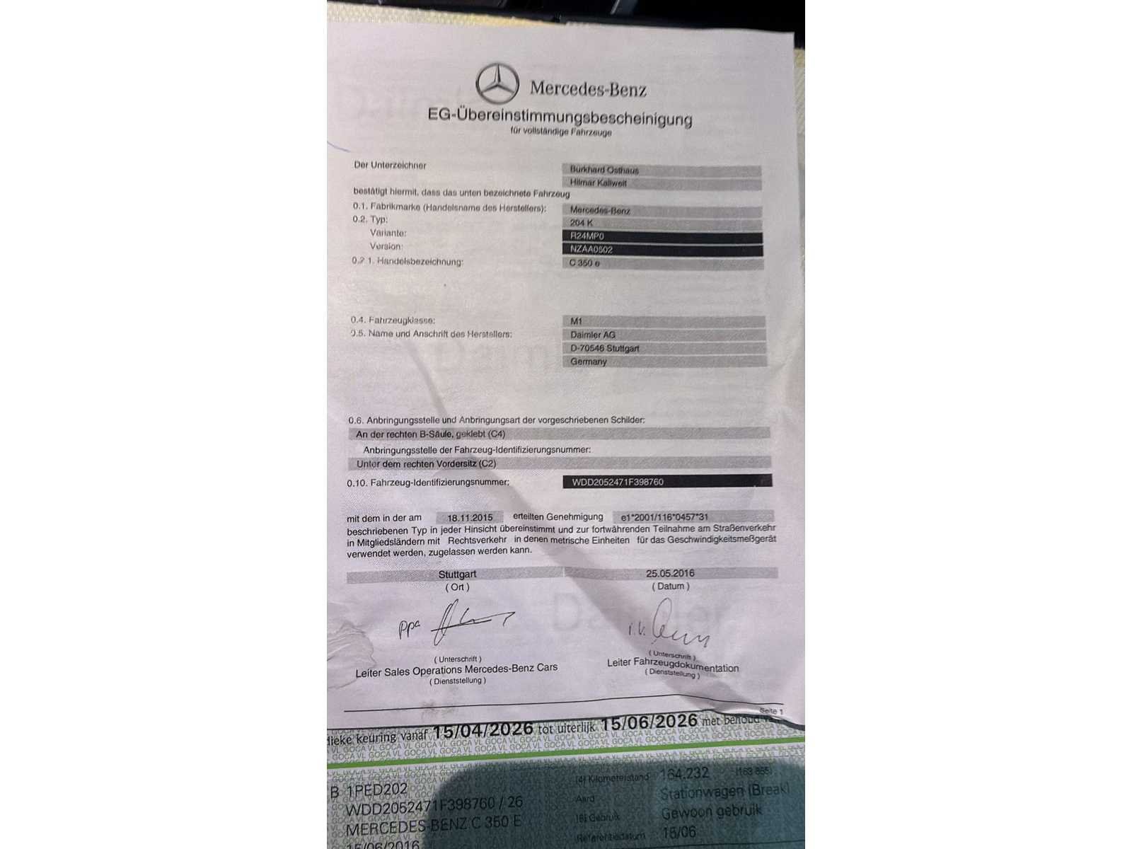 Nee Merk: Mercedes-Benz Model: C 350 e Bouwjaar: 2016 Afgelezen kilometerstand: 175000km Cilinderinhoud: 1991cc Vermogen (kW): 155kW Brandstof: hybride (elektrisch+benzine) Chassisnummer: WDD2052471F398760 Datum eerste toelating: 15/06/2016 Aantal zitplaatsen: 5 Transmissie: Automaat Emissieklasse: Euro 6b Aantal deuren: 5 Nationaliteit documenten: Belgisch Start en rijdt: Ja Keuringsrapport geldig tot: 15/06/2026 startinformatie : Start & rijdt Vavato voert geen technische keuring uit.: true Airconditioning: true Inschrijvingsbewijs - deel 1 : Aanwezig Inschrijvingsbewijs - deel 2: Aanwezig