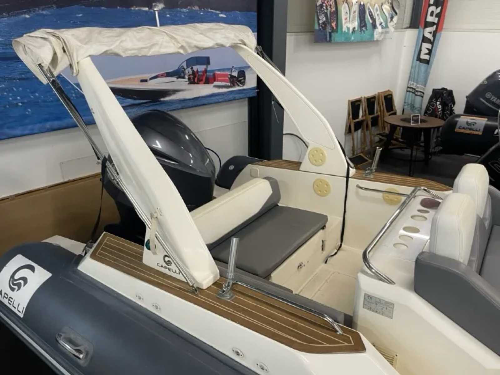 High-thrust/ EFI Yamaha F350AETU buitenboordmotor Nee Merk: Capelli Model: Tempest 850 WA Product type: RIB Aantal motoren: 1 Type: Tempest 850 WA Rompmateriaal: Hypalon tubes Polyester romp Merk motor: Yamaha F350AETU Brandstof: Benzine Bouwjaar: 2015 Lengte: 8.5m Breedte: 3m Materiaal: GRP / Hypalon