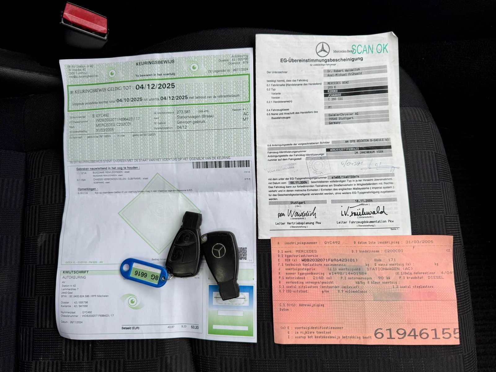 Opgelet, deze auto zal niet worden gekeurd voor verkoop (van toepassing op Belgische particuliere kopers). No Merk: Mercedes-Benz Model: C200CDI Bouwjaar: 2005 Afgelezen kilometerstand: 276989km Cilinderinhoud: 2148cc Vermogen (kW): 90kW Brandstof: diesel Chassisnummer: WDB2032071F696423 Aantal sleutels: 2 Nationaliteit documenten: Belgisch Start en rijdt: Ja Keuringsrapport geldig tot: 12/2025 Vavato voert geen technische keuring uit.: true Inschrijvingsbewijs - deel 1 : Aanwezig Inschrijvingsbewijs - deel 2: Aanwezig