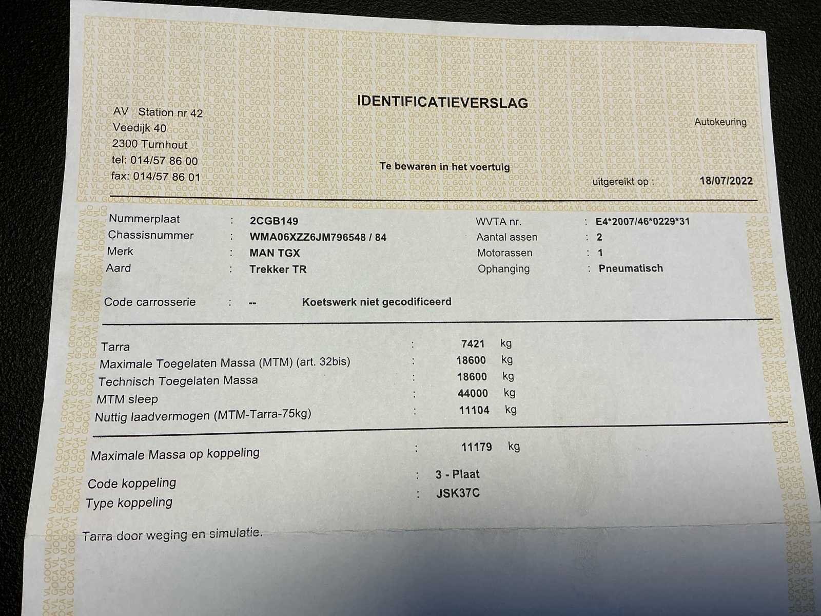 Geschikt voor ADR Tanktransport! Nee Merk: MAN Type: TGX Bouwjaar: 2018 Chassisnummer VIN: WMA06XZZ6JM796548 Cilinderinhoud: 12419cc Kilometerstand bij opname: 601159km Aantal assen: 2 Fuel Type: Diesel Aantal sleutels: 2 Emissieklasse: Euro6 Slaapcabine: true Startinformatie: Start en rijdt Nationaliteit documenten: Belgisch Kentekenpapieren compleet?: true Zelf rijdend exporteren: Mogelijk Automaat: true