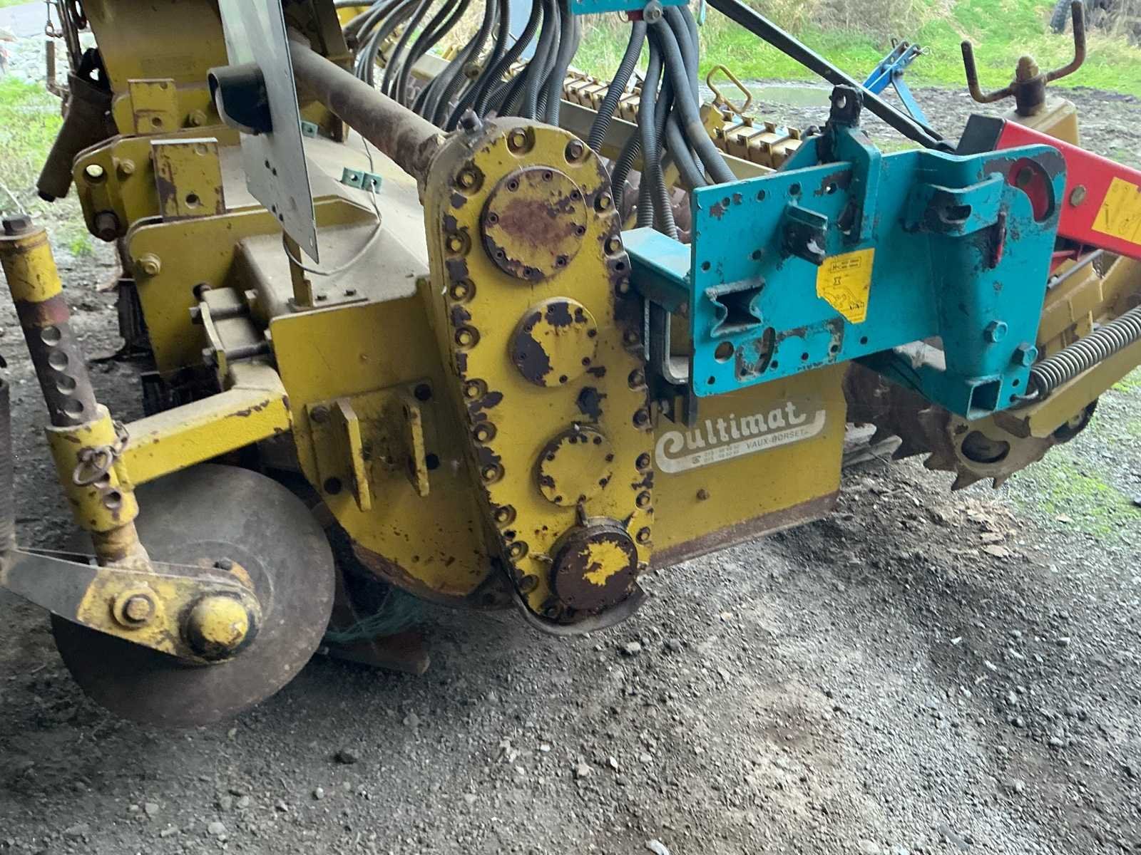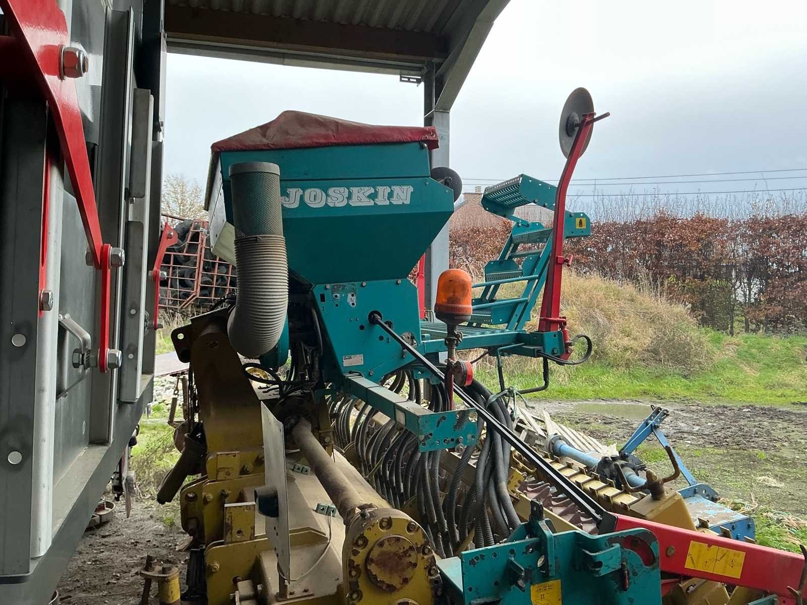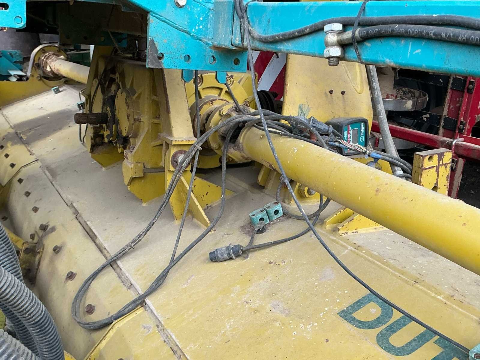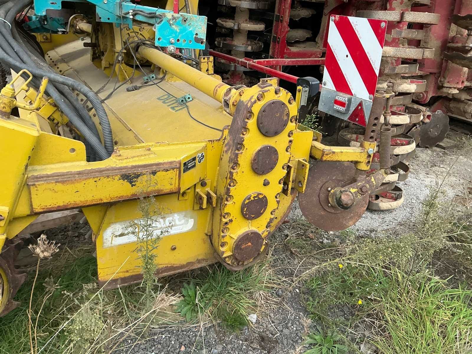 Deze complete zaaicombinatie bestaat uit een Sulky spi pneumatische fijnzaaimachine gemonteerd op een Dutz Rotovator KR 400 van 4 meter breed, uitgerust met een dubbele packerrol en vast frame. Het gaat om een robuuste en professionele opstelling die in één werkgang grondbewerking, nivelleren, zaadverdeling en aandrukken combineert. 🔧 Onderbouw: Dutz Rotovator KR 400 – 4 meter • Werkbreedte: 4,00 meter • Krachtige rotoreg met geharde pennen, ideaal voor goede verkruimeling en een egaal zaaibed • Dubbele packerrol achteraan voor perfecte aandrukking en gelijkmatige opkomst • Stabiel zwaar frame geschikt voor middelgrote tot grote tractoren • Bouwdelen zijn slijtvast en mechanisch eenvoudig te onderhouden Deze rotoreg creëert een ideaal zaaibed, zelfs in moeilijkere grondsoorten. 🌱 Bovenbouw: Sulky Spi pneumatische zaaimachine De sulky SPI is een precisie-fijnzaaimachine, gekend om zijn uniforme dosering en betrouwbare pneumatische verdeling. Kenmerken: • 2 doseereenheden met fijninstelbare zaadrollen • Pneumatisch verdeelsysteem via slangen naar de zaaiopeningen • Geschikt voor: • graszaad • klaver / luzerne • graan (tarwe, gerst) • groenbemesters • koolzaad • Opbrengsthoeveelheid zeer nauwkeurig regelbaar • Grote zaadbak met stevige stofhoes 📏 Rijen & Verdeling • Aantal rijen: 32 rijen • Rijafstand: 12,5 cm • Perfect geschikt voor graslandinrichting, doorzaai en akkerbouw-groenbemesting Het zaaibeeld is zeer gelijkmatig door de combinatie van de packerrol en de pneumatische verdeling. No Merk: Dutzi + Sulky Type: Rotor cultivator kr400 & zaaimachine SPI Bouwjaar: 1999 Serienummer: SP08110 Werkbreedte: 4000mm Aantal rijen: 32 Rijenafstand: 1250mm