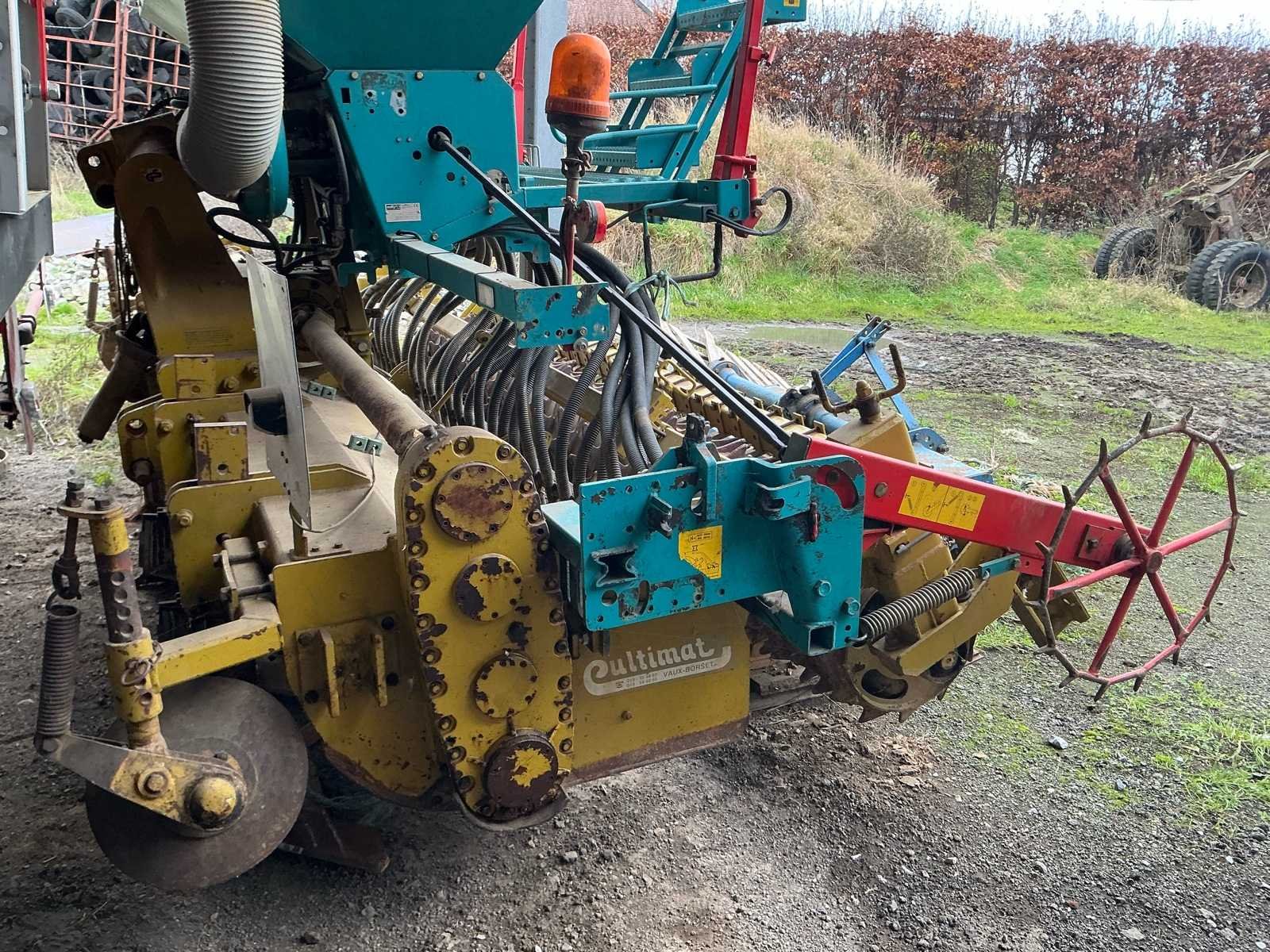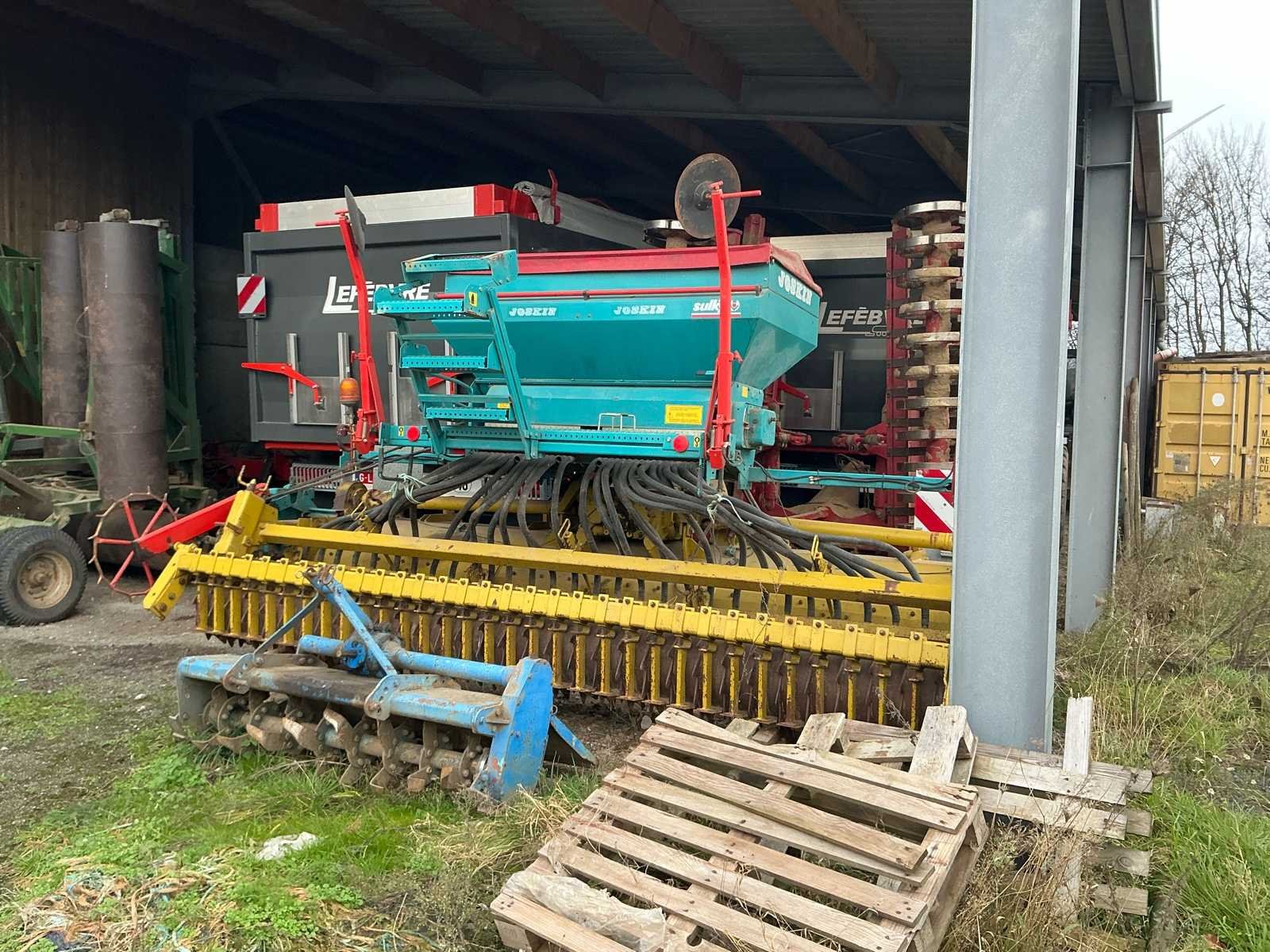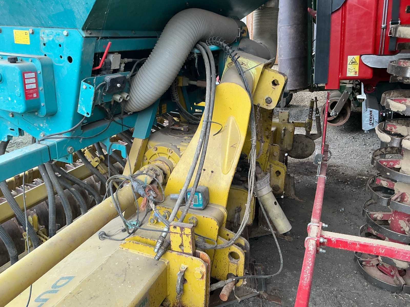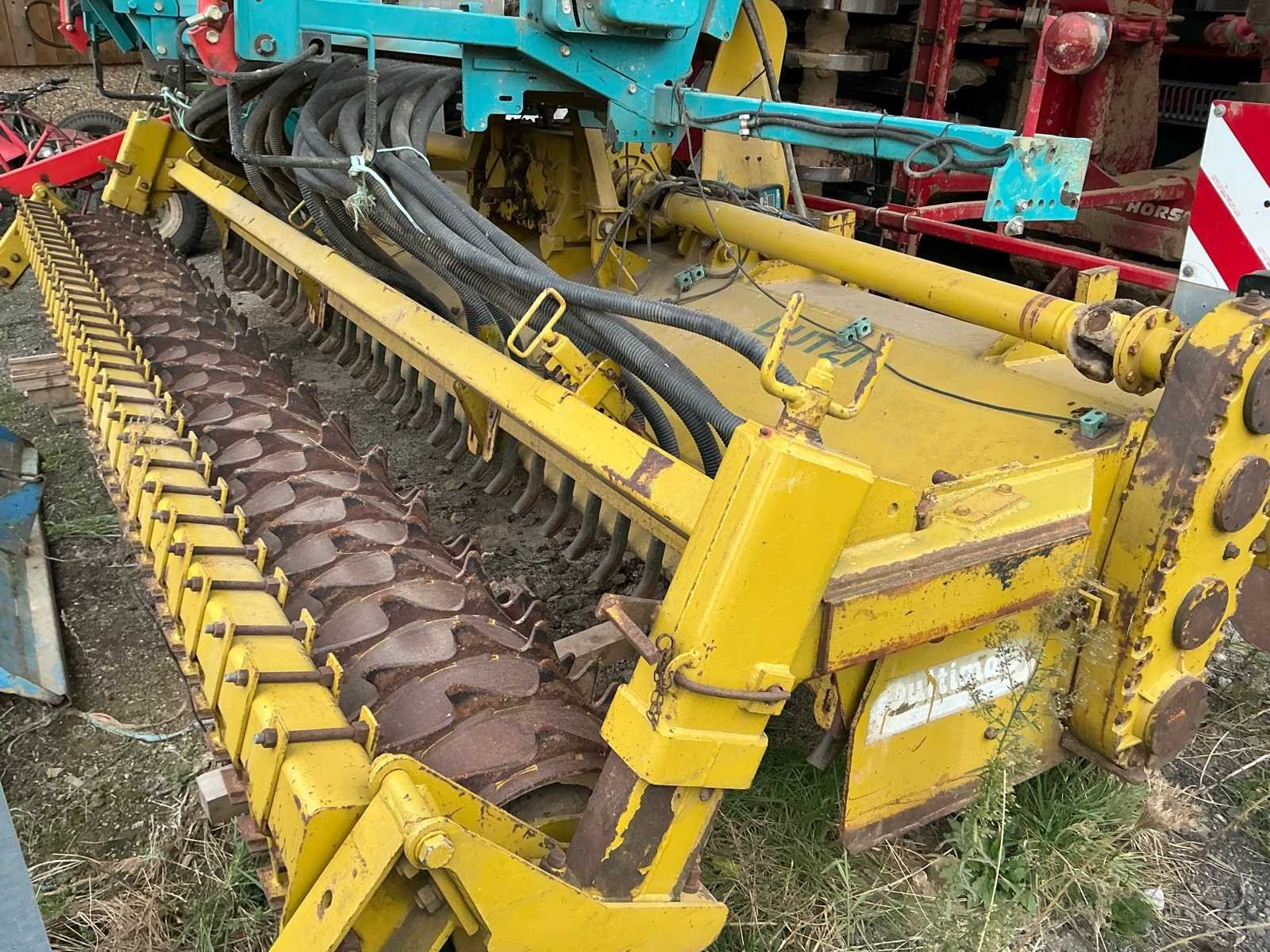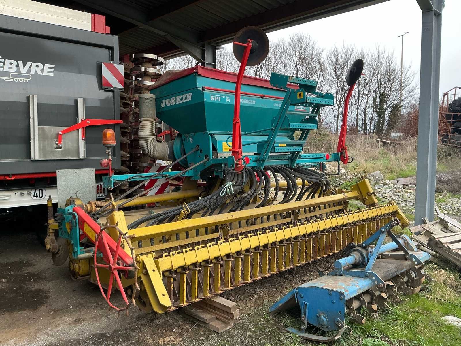 Deze complete zaaicombinatie bestaat uit een Sulky spi pneumatische fijnzaaimachine gemonteerd op een Dutz Rotovator KR 400 van 4 meter breed, uitgerust met een dubbele packerrol en vast frame. Het gaat om een robuuste en professionele opstelling die in één werkgang grondbewerking, nivelleren, zaadverdeling en aandrukken combineert. 🔧 Onderbouw: Dutz Rotovator KR 400 – 4 meter • Werkbreedte: 4,00 meter • Krachtige rotoreg met geharde pennen, ideaal voor goede verkruimeling en een egaal zaaibed • Dubbele packerrol achteraan voor perfecte aandrukking en gelijkmatige opkomst • Stabiel zwaar frame geschikt voor middelgrote tot grote tractoren • Bouwdelen zijn slijtvast en mechanisch eenvoudig te onderhouden Deze rotoreg creëert een ideaal zaaibed, zelfs in moeilijkere grondsoorten. 🌱 Bovenbouw: Sulky Spi pneumatische zaaimachine De sulky SPI is een precisie-fijnzaaimachine, gekend om zijn uniforme dosering en betrouwbare pneumatische verdeling. Kenmerken: • 2 doseereenheden met fijninstelbare zaadrollen • Pneumatisch verdeelsysteem via slangen naar de zaaiopeningen • Geschikt voor: • graszaad • klaver / luzerne • graan (tarwe, gerst) • groenbemesters • koolzaad • Opbrengsthoeveelheid zeer nauwkeurig regelbaar • Grote zaadbak met stevige stofhoes 📏 Rijen & Verdeling • Aantal rijen: 32 rijen • Rijafstand: 12,5 cm • Perfect geschikt voor graslandinrichting, doorzaai en akkerbouw-groenbemesting Het zaaibeeld is zeer gelijkmatig door de combinatie van de packerrol en de pneumatische verdeling. No Merk: Dutzi + Sulky Type: Rotor cultivator kr400 & zaaimachine SPI Bouwjaar: 1999 Serienummer: SP08110 Werkbreedte: 4000mm Aantal rijen: 32 Rijenafstand: 1250mm