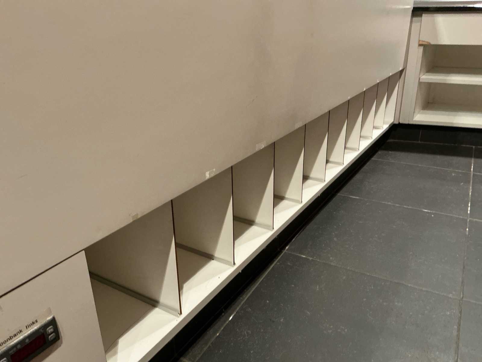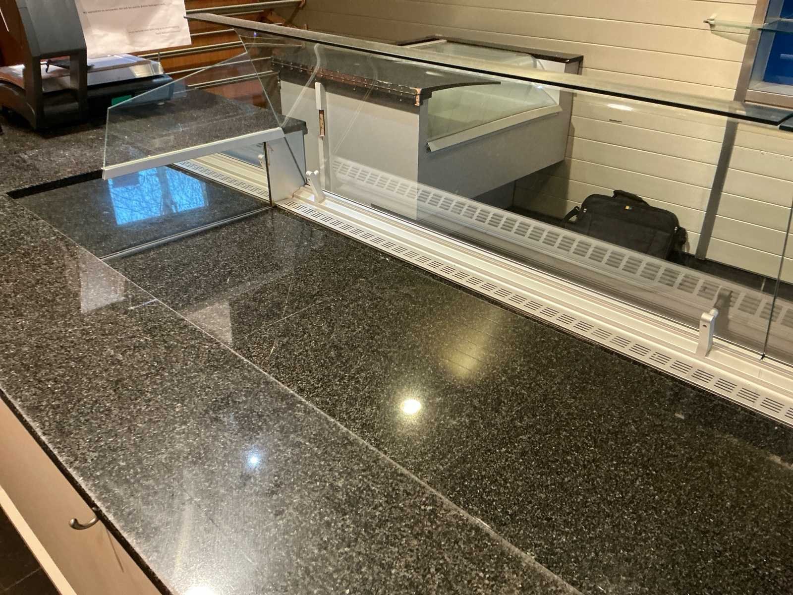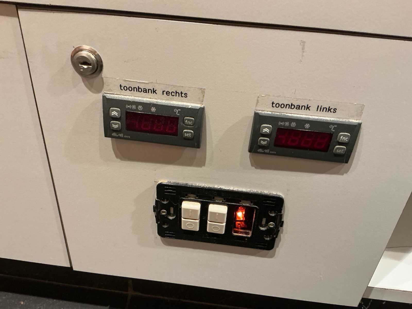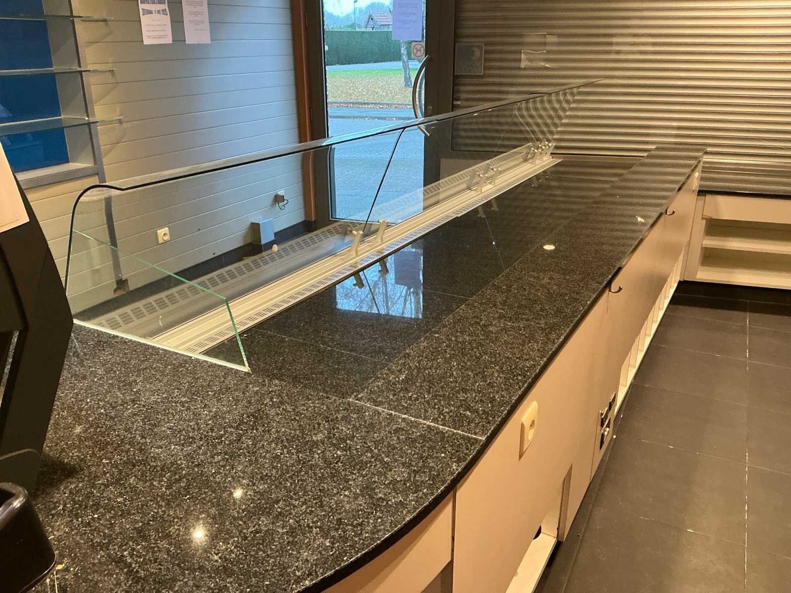 Volledig werkende staat. 2 koelgroepen buiten. Aparte praline toog. Ingebouwde stopcontacten en kasten. Koeltoog van circa 4m60 lang. 6 lopende meter broodrekken. Zelf te demonteren. Kassa en weegschaal niet inbegrepen. No Bouwjaar: 2003