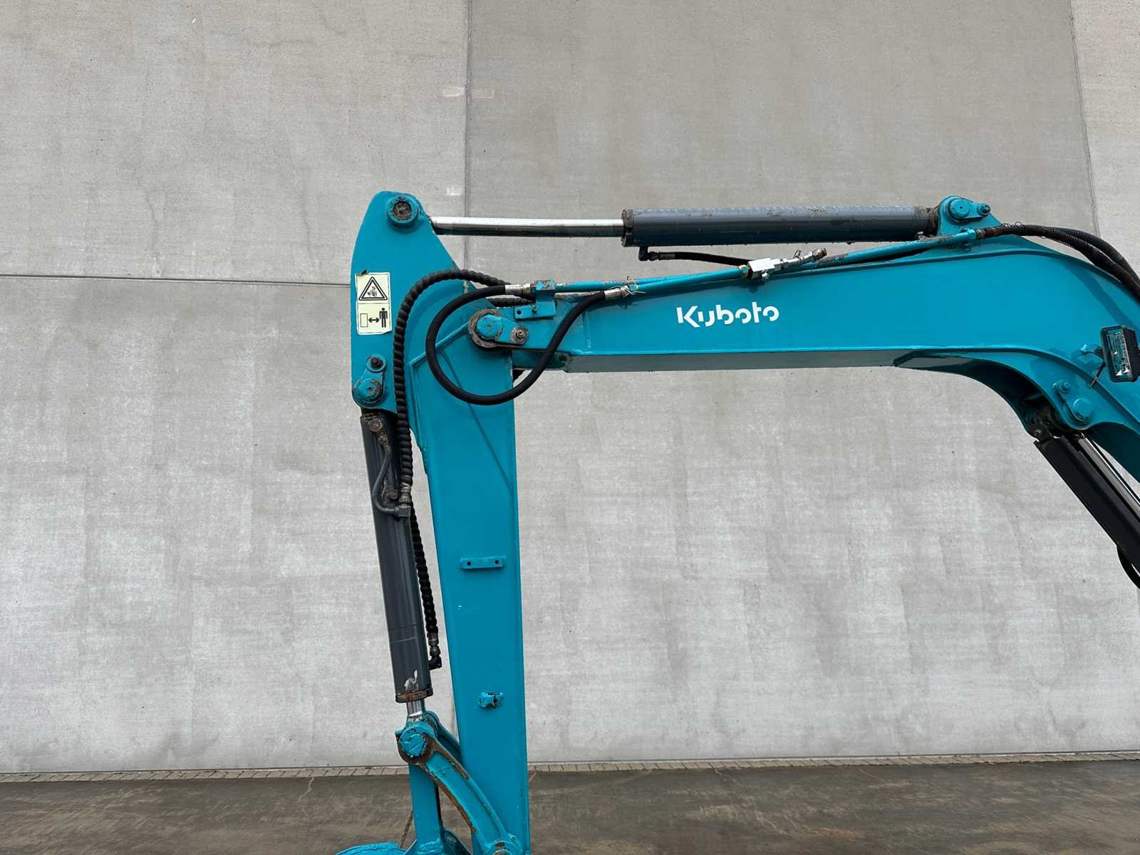 Hamerleidingen Tandenbak Duwblad Rupsen met rubber pads Motorkap ontbreekt Nee Merk: Kubota Type: KX155-3SZ Serienummer: 80359 Merk motor: Kubota Motorvermogen (kW): 29.4kW Aantal cilinders: 4 Brandstof: diesel Graafbak afm. b: 600mm Rups breedte: 400mm Afgelezen urenstand: 2409 Eigen gewicht: 5115kg Totale afmeting L: 5500mm Totale afmeting Breedte: 2000mm Totale afmeting Hoogte: 2500mm GS Code: 8429521200