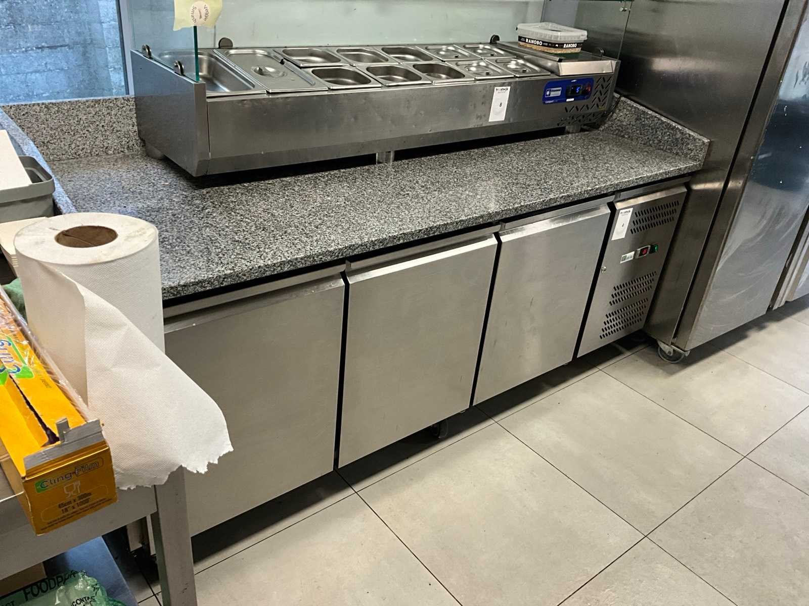 Voorzien van natuursteen werkblad met opstand, 3x deur + ingebouwde koeling, koelkast zal leeg zijn bij ophaling Nee Merk: API Type: Collin luci Digitale uitlezing: true Rvs: true Aansluiting: 220V Lengte: 80cm Breedte: 203cm Hoogte: 93cm