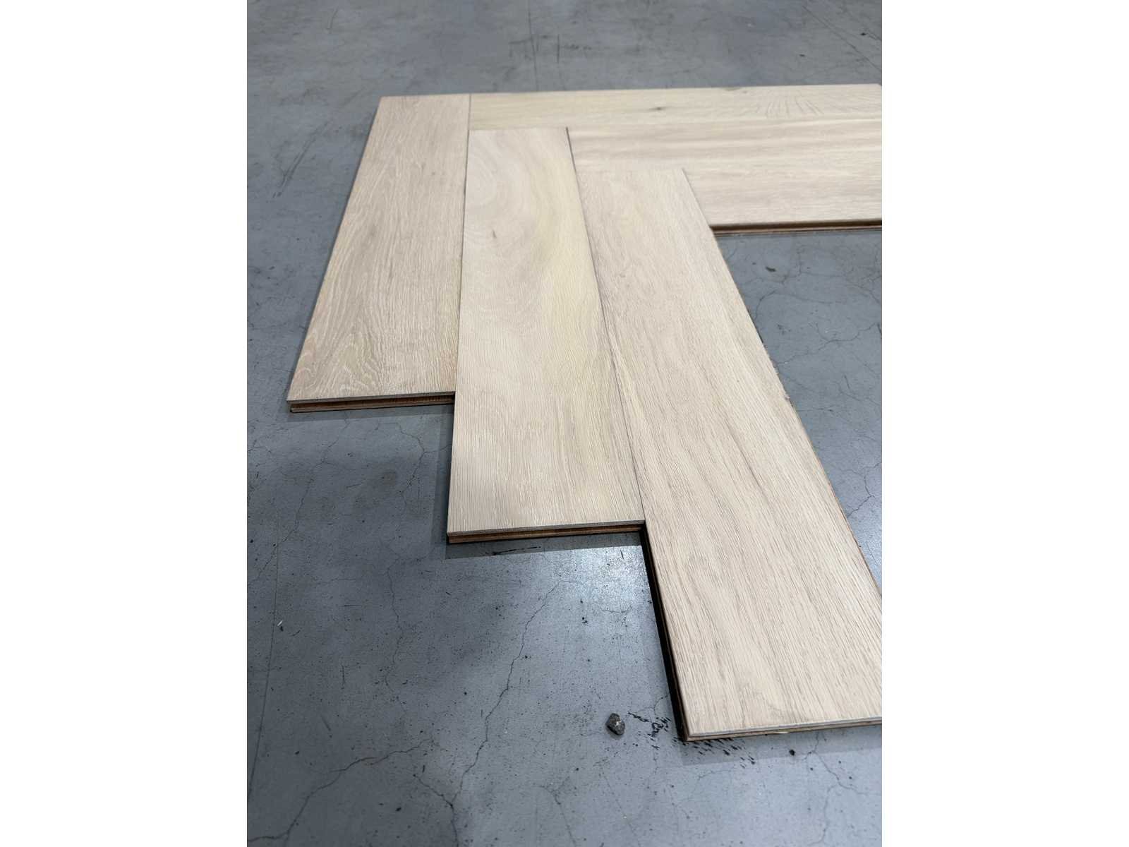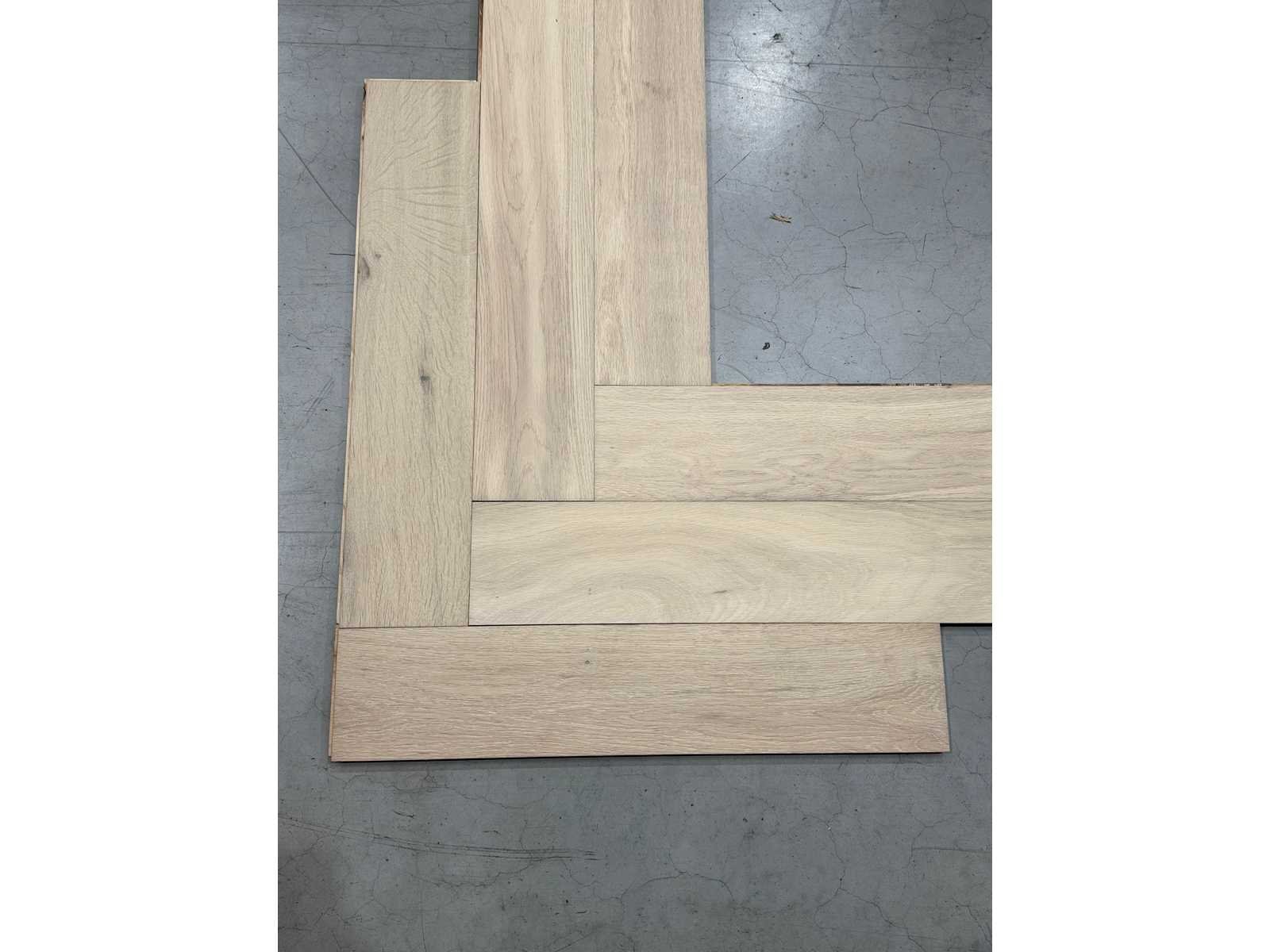 40,8 m2 Eiken meerlagen visgraat parket, geborsteld en gelakt, mes en groef te verlijmen, Kleur: Pyramid afmetingen: 600x125x15mm, 3mm toplaag No Oppervlakte: 40,8m² Geschikt voor vloerverwarming: true V-groef: true Aantal m² per verpakking: 1,2m² Lengte: 600mm Breedte: 15mm Hoogte: 15mm Materiaal: Meerlagen Parket