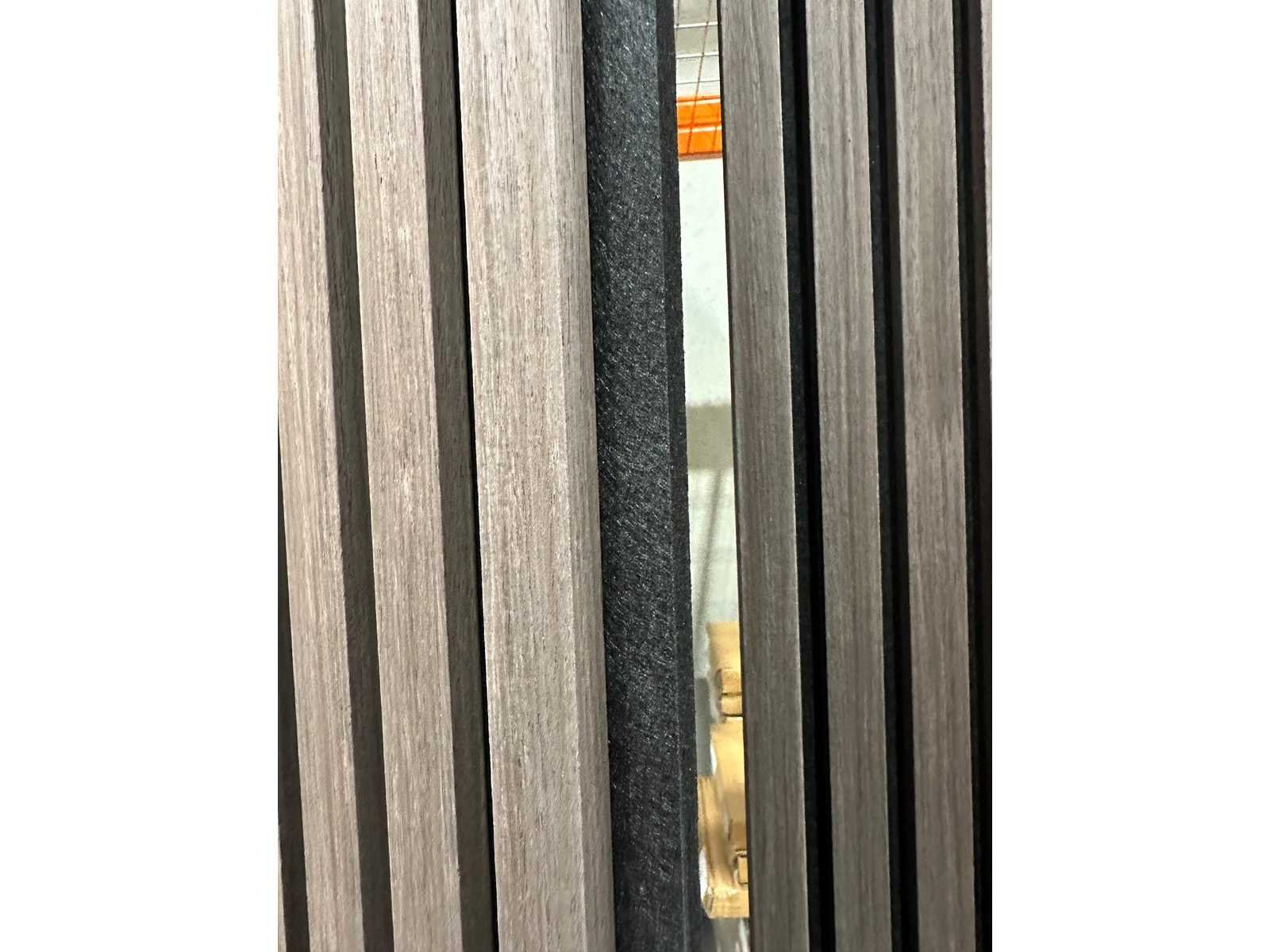 10,53 m² wandpanelen, eenvoudig montage, flexiebel, helpt met geluidsisolatie No Kleur: Ebony Lengte: 270cm Breedte: 32,5cm Hoogte: 2,1cm Oppervlakte: 10,53m² Materiaal: Eiken hout