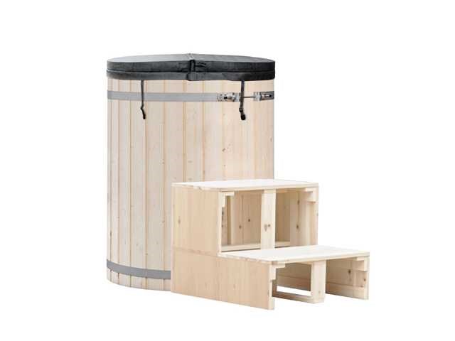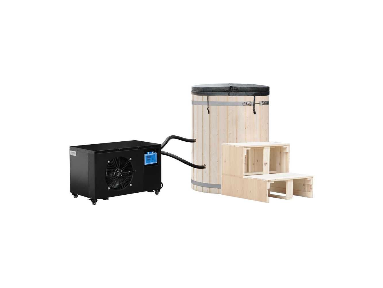 Extern bad afmeting: 855(diameter)x1000mm (hoogte) Water tank afmeting: 855(diameter)x900mm (hoogte) stainless steel linner, met insulation cover en houten opstap (CE certificaat beschikbaar) 1HP 220V 50HZ basic chiller & filter en Ozone systeem No Model: Ijsbad