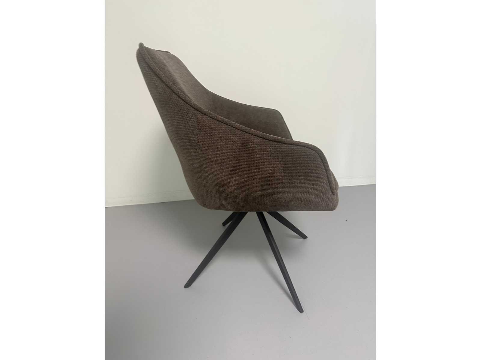 Design eetkamerstoelen, draaibaar onderstel, ongebruikt Let op: Bij afhaling van de goederen dient u deze zorgvuldig te controleren. Na afhaling is retour of na-service niet mogelijk. Indien u niet aanwezig bent op de afgesproken afhaaldag, worden extra kosten in rekening gebracht. No Model: JD8751- brown Product type: Eetkamerstoel Kleur: bruin Materiaal: chenille