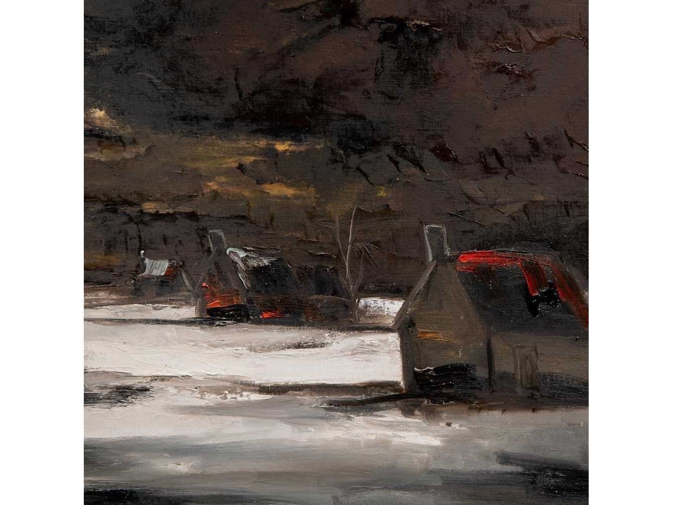 Indrukwekkend, grootschalig winterlandschap met laag dorpsgezicht onder een dramatische lucht, uitgevoerd in krachtige penseelstreken en een warm-contrasterend kleurenpalet. Het werk toont Paul Permeke’s kenmerkende expressieve visie op het Vlaamse landschap, ruig, geladen en poëtisch - ingelijst Nee Kunstenaar: Paul Permeke (1918 – 1990) Titel van werk: Winteravond Techniek: olieverf op doek Handtekening/oplage: true Oplage: Origineel Gesigneerd: Gesigneerd Hoogte: 130cm Breedte: 175cm Hoogte incl. lijst: 149cm Breedte incl. lijst: 193cm Frame: true