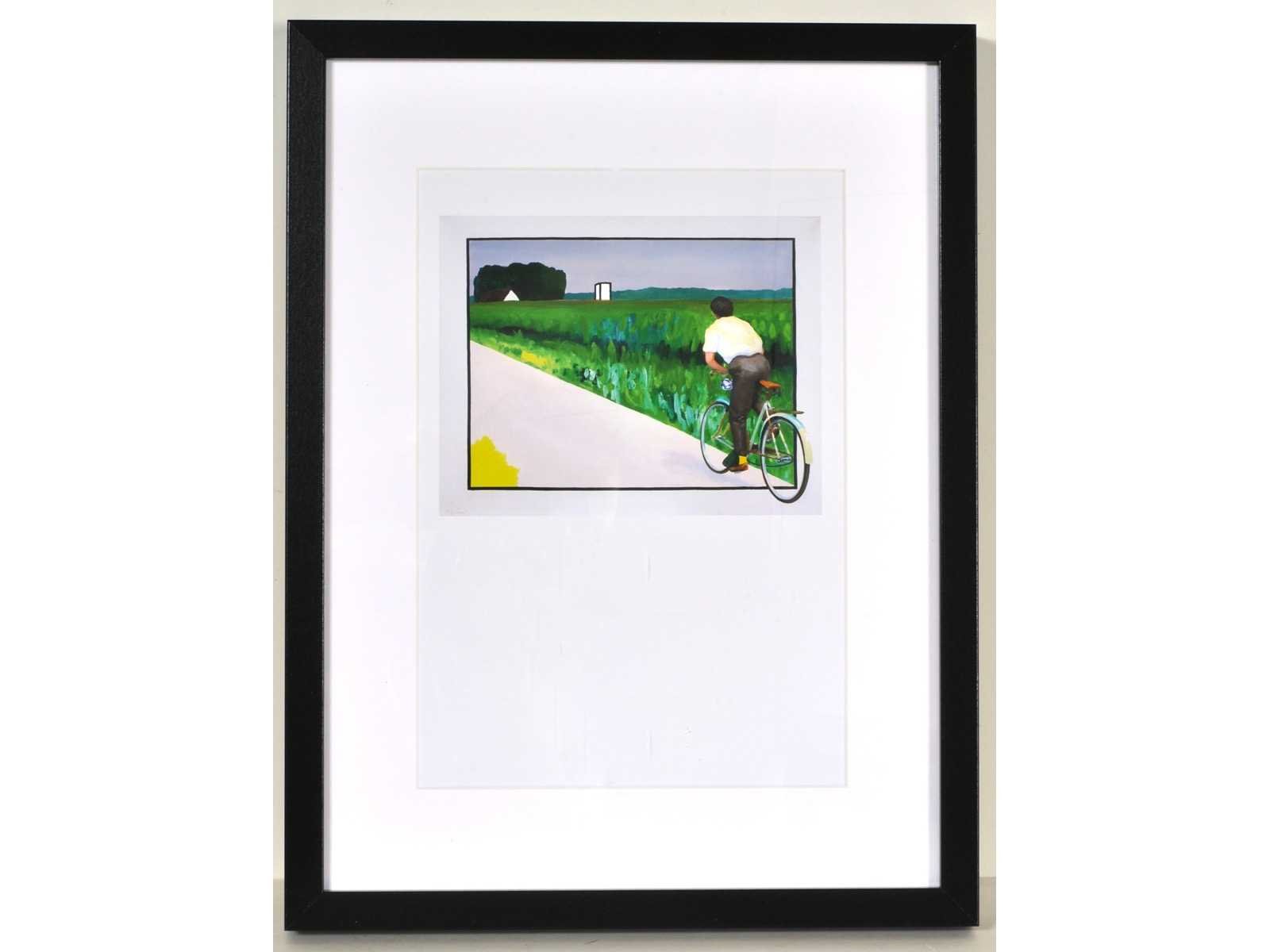 Uitgebracht op 500 exemplaren ter gelegenheid van de tentoonstelling "De Wereld van Roger Raveel" in de lokettenzaal van het Vlaams Parlement te Brussel – ingelijst met passe-partout (30x40 cm) Nee Kunstenaar: Roger Raveel Titel van werk: op weg naar zijn geliefde Techniek: offset Oplage: 500 Hoogte incl. lijst: 40cm Breedte incl. lijst: 30cm Frame: true