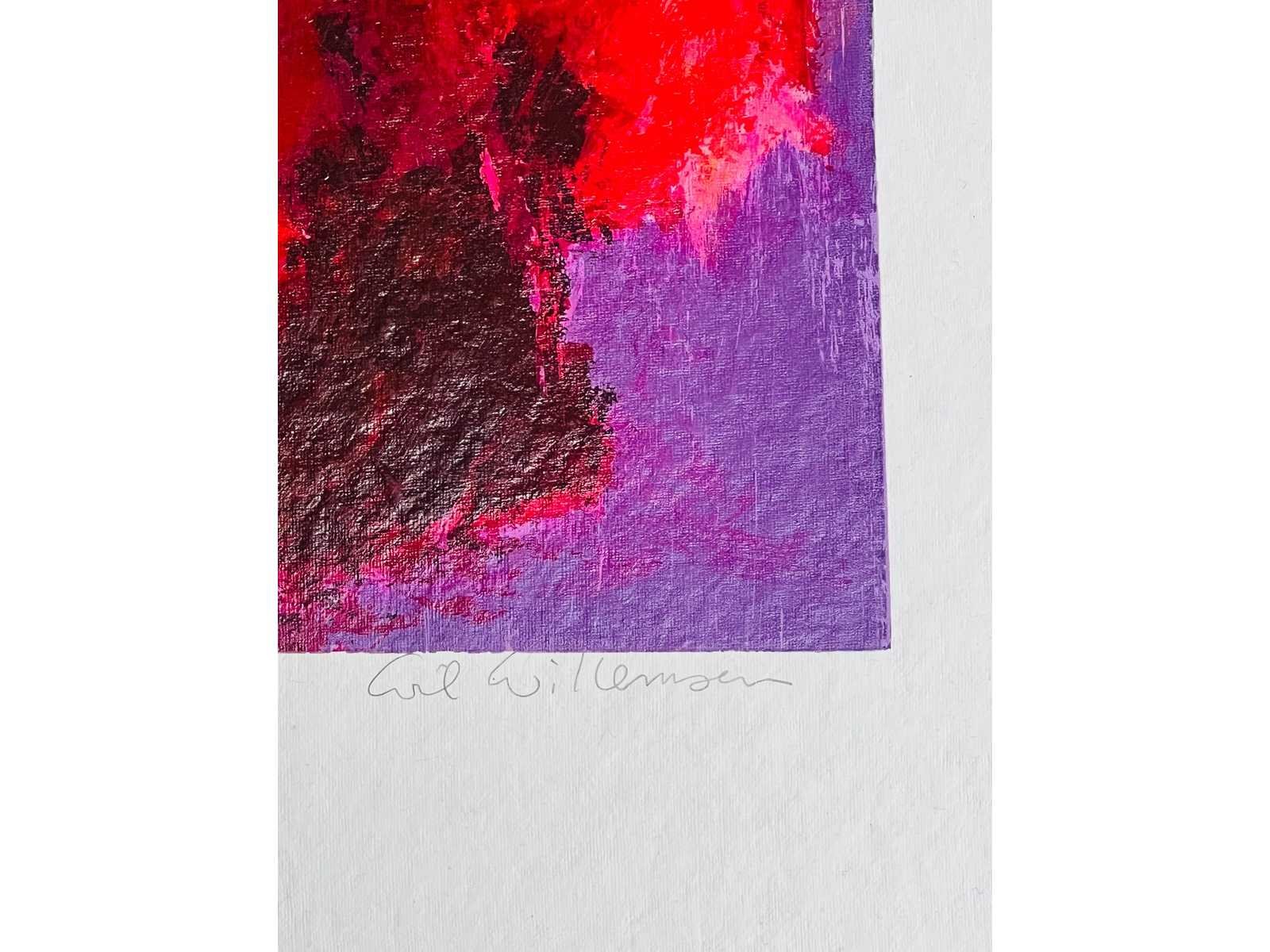 Kleurenzeefdruk op stevig handgeschept papier - zeldzaam kunstenaarsexemplaar (épreuve d'artiste) No Kunstenaar: Wil Willemsen (Amsterdam 1943) Techniek: kleurenzeefdruk Handtekening/oplage: true Gesigneerd: getekend Hoogte: 60cm Breedte: 50cm