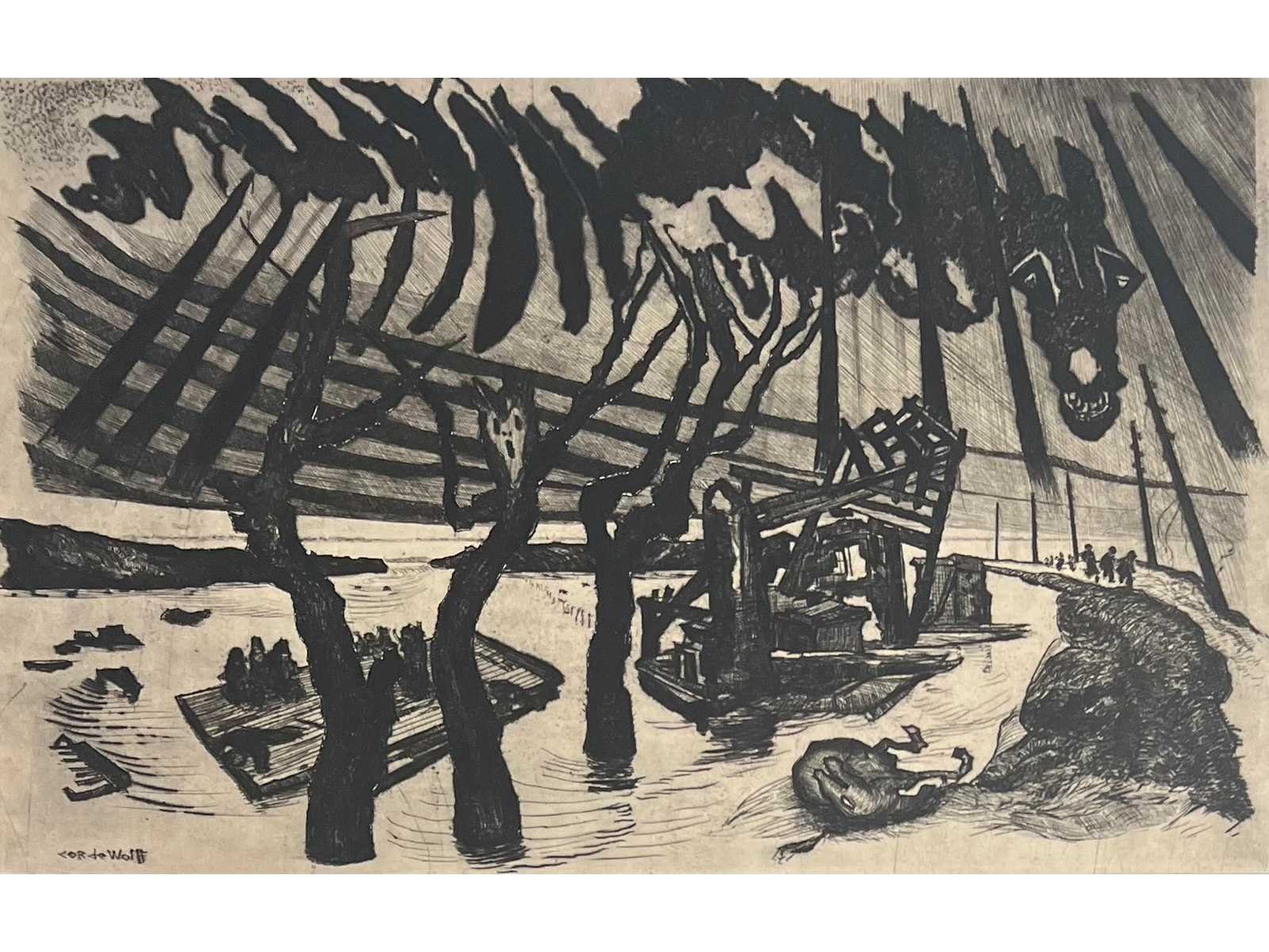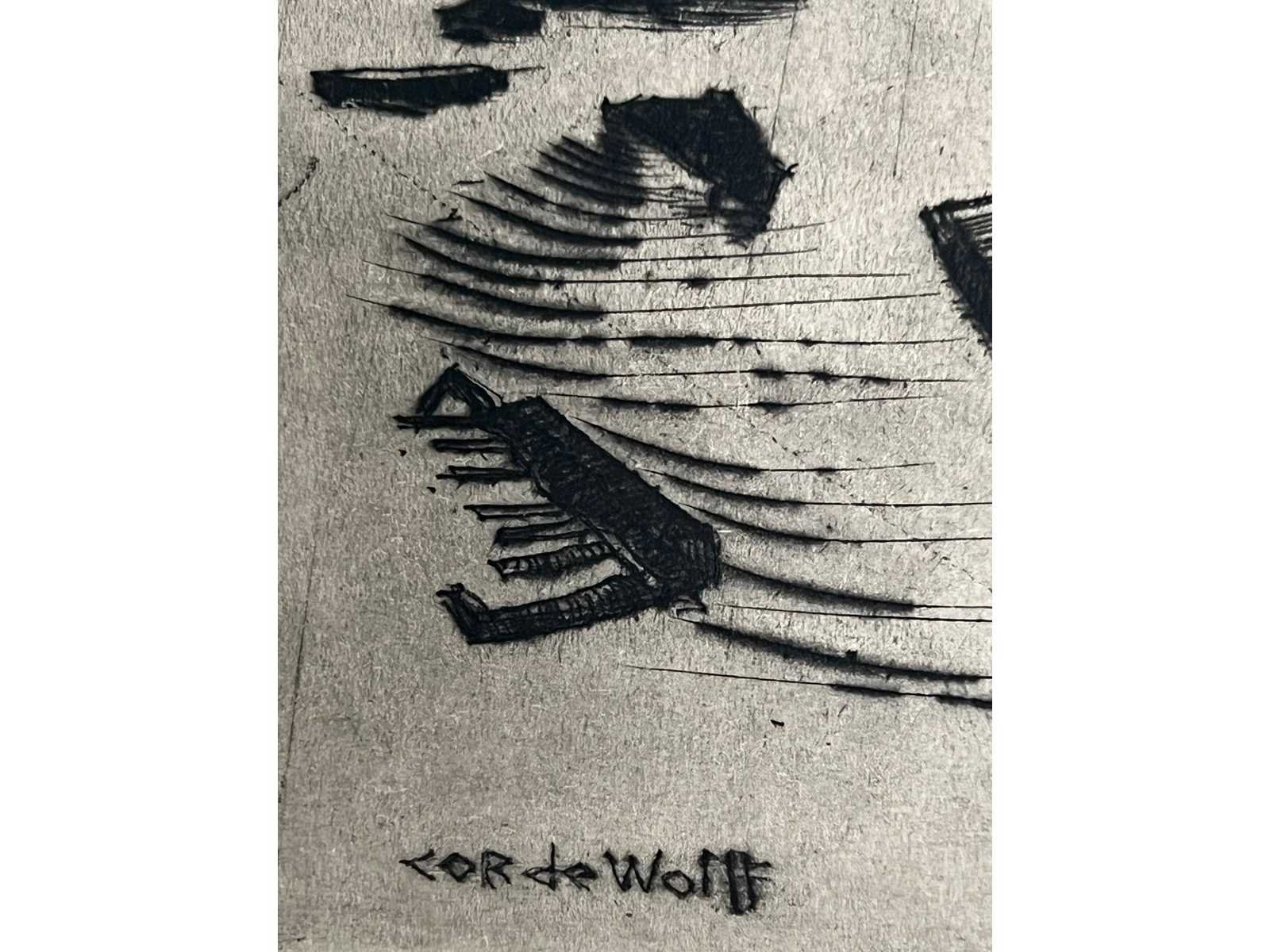 Zeldzame ets uit 1953 - gemonteerd in passe-partout (64,5x48 cm) - lage instel No Kunstenaar: Cor De Wolff Datering: 1953 Techniek: ets Handtekening/oplage: true Oplage: 53 Gesigneerd: getekend + getekend in de plaat Hoogte: 50cm Breedte: 40cm