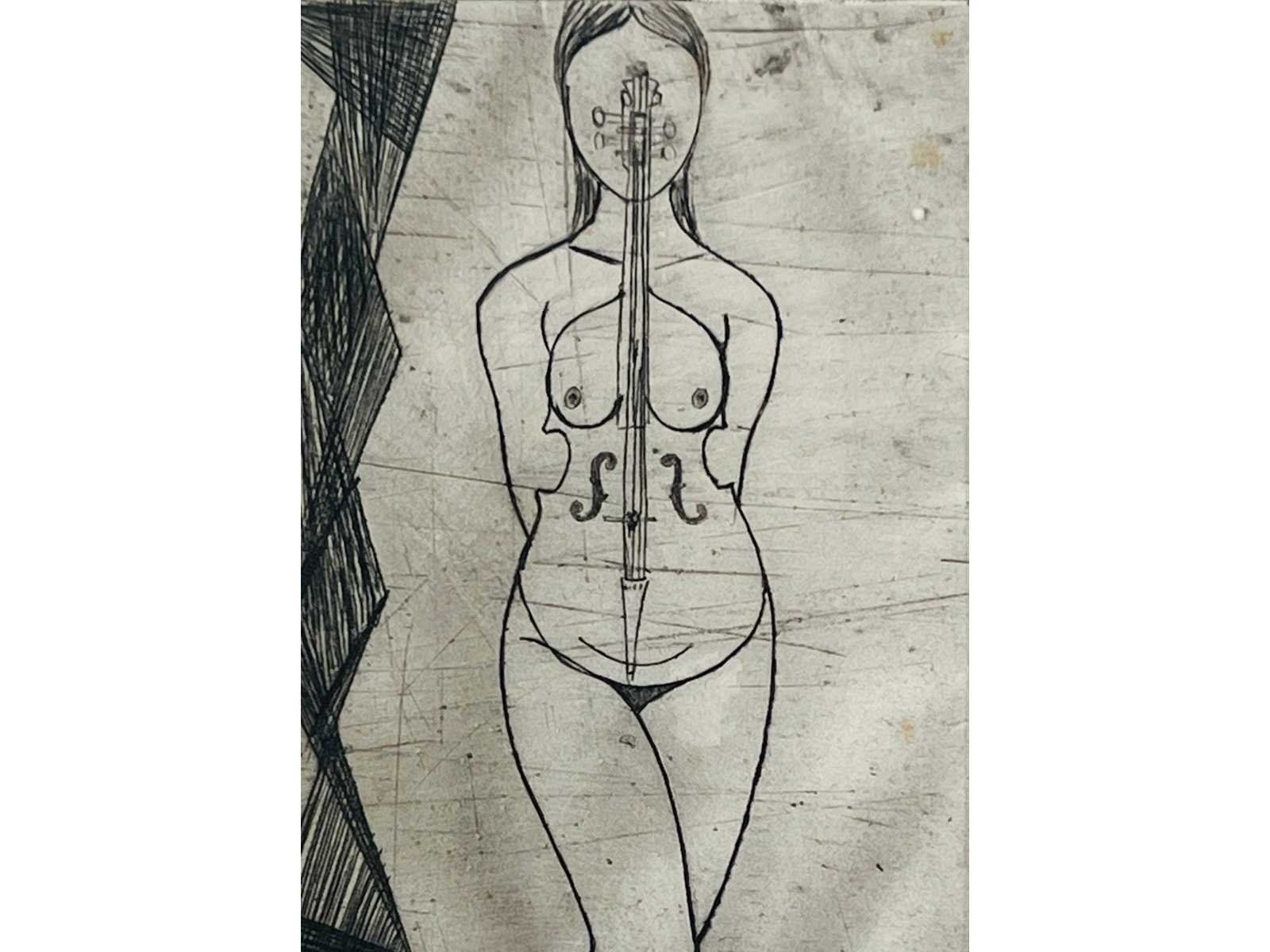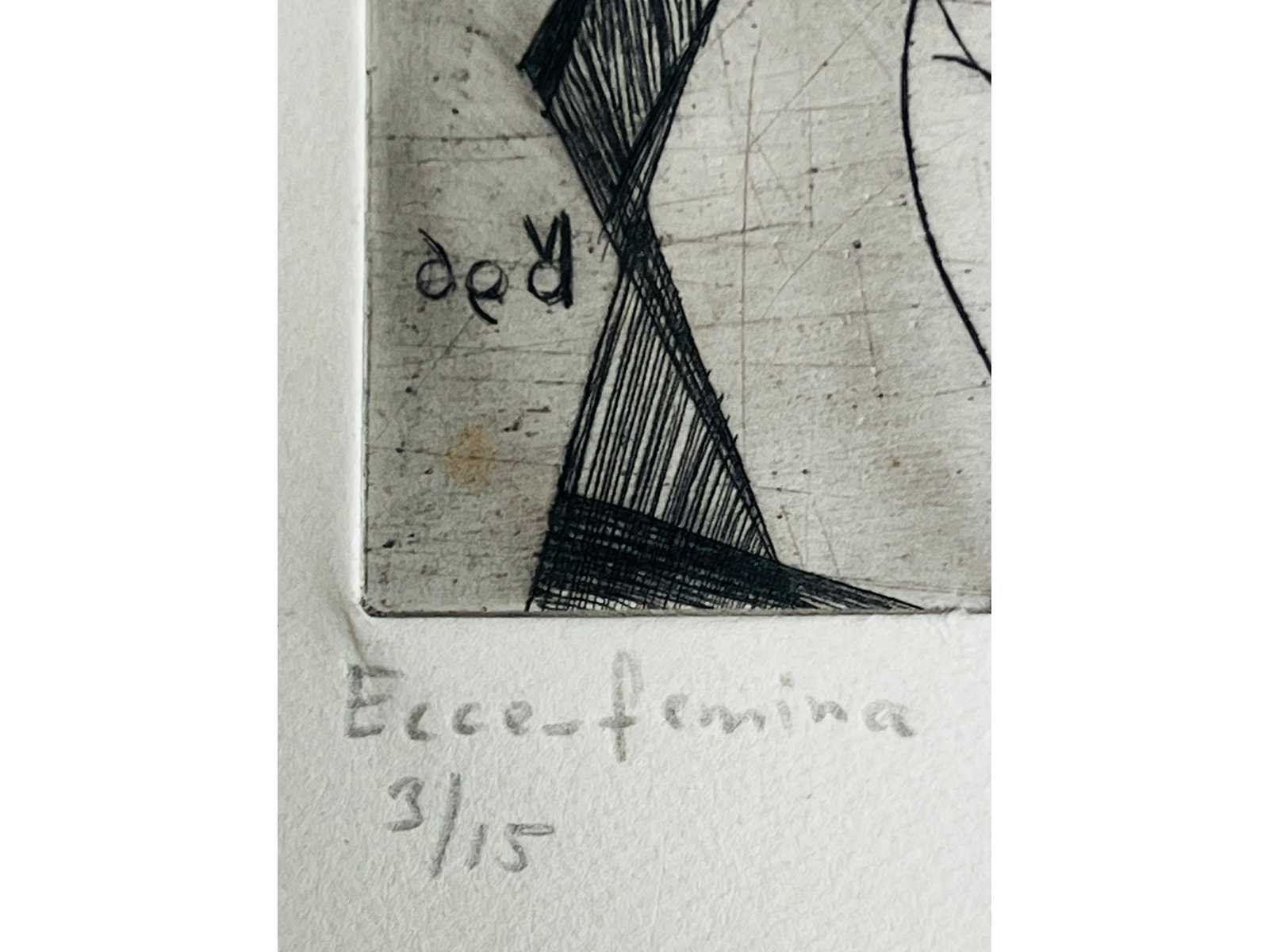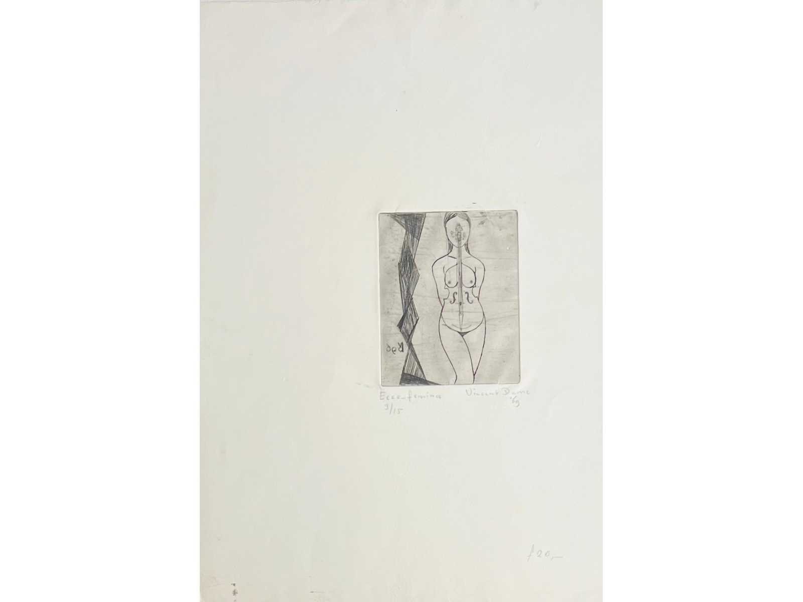 Zeldame ets van Vincent Dame in een oplage van slechts 15 exemplaren - de imperfecties in de bladrand zijn volledig weg te werken met een passe-partout bij inlijsting van het werk - bieden vanaf 1 euro No Kunstenaar: Vincent Dame (Den Haag 1946-1995) Titel van werk: Ecce-Femina Periode: 1969 Techniek: Ets Hoogte: 39cm Breedte: 27cm