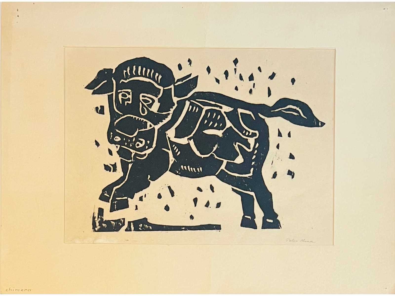 Kleine imperfecties in het blad (grotendeels weg te werken bij inlijsting) No Kunstenaar: Peter Alma (Medan, Nederlands-Indië 1886-1969) Techniek: houtsnede Handtekening/oplage: true Gesigneerd: getekend Hoogte: 32,5cm Breedte: 43,5cm