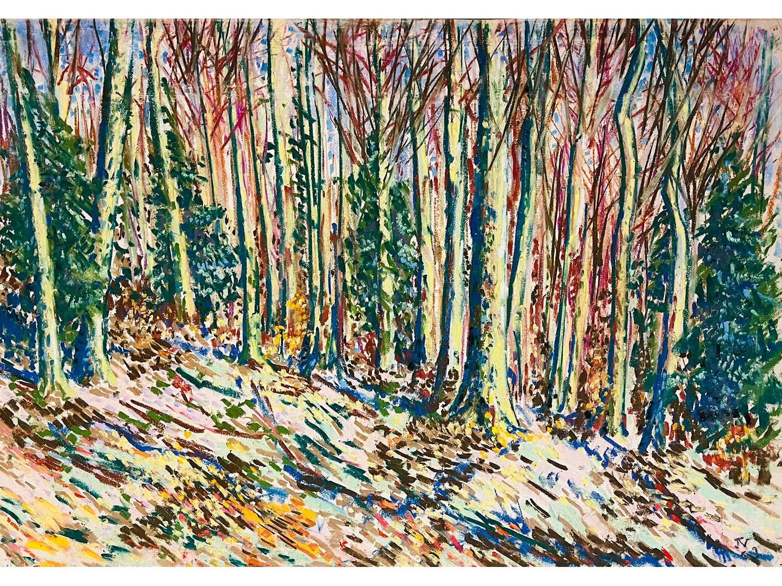Onbekende meester - boszicht - originele pastel uit 1963 - pastel op papier en gemonteerd op paneel - prachtig werk - in uitstekende staat - gemonogrammeerd JV - gedateerd (19)63 - 100x70 cm - lage instelprijs No Kunstenaar: onbekend meester monogram JV Periode: 1963 Techniek: pastel Handtekening/oplage: true Oplage: origineel Gesigneerd: gemonogrammeerd JV Hoogte: 70cm Breedte: 100cm