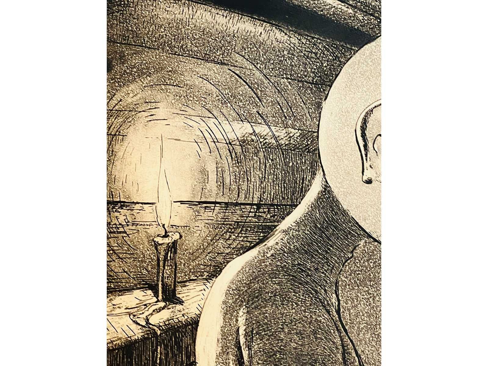 Zeldzame en mooie ets van Van Akelijen uit 1979 - getekend, gedateerd en genummerd in een oplage van 150 exemplaren - vergeling in de marges (weg te werken met passe-partout bij inlijsting) No Kunstenaar: Roger Van Akelijen (Antwerpen 1948) Periode: 1979 Techniek: ets Handtekening/oplage: true Oplage: 150 Gesigneerd: getekend Hoogte: 53cm Breedte: 39cm