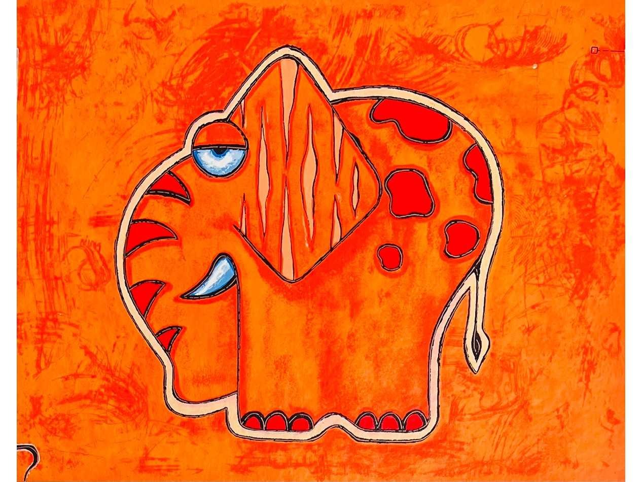 Kleurenzeefdruk op geschept papier uit 2006 - één van de 45 zeldzame kunstenaarsexemplaren EA (épreuve d'artiste) - galerieprijs: 379 euro No Kunstenaar: Michiel Molenaar (Den Haag 1963) Titel van werk: elephant Periode: 2006 Techniek: kleurenzeefdruk Handtekening/oplage: true Oplage: EA 45 Gesigneerd: getekend Hoogte: 60cm Breedte: 50cm