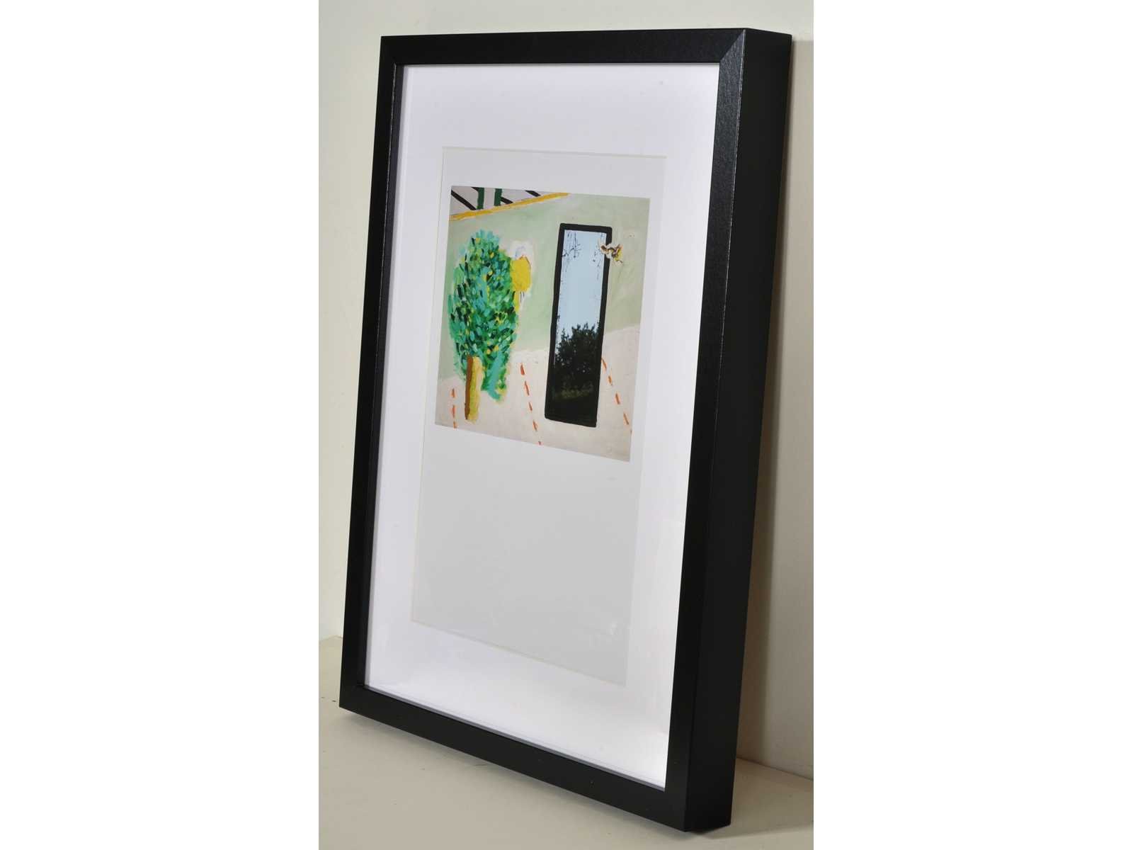 Uitgebracht op 500 exemplaren ter gelegenheid van de tentoonstelling "De Wereld van Roger Raveel" in de lokettenzaal van het Vlaams Parlement te Brussel – ingelijst met passe-partout (30x40 cm) Nee Kunstenaar: Roger Raveel Titel van werk: tuin met spiegel Techniek: offset Oplage: 500 Hoogte incl. lijst: 40 Breedte incl. lijst: 30 Frame: true