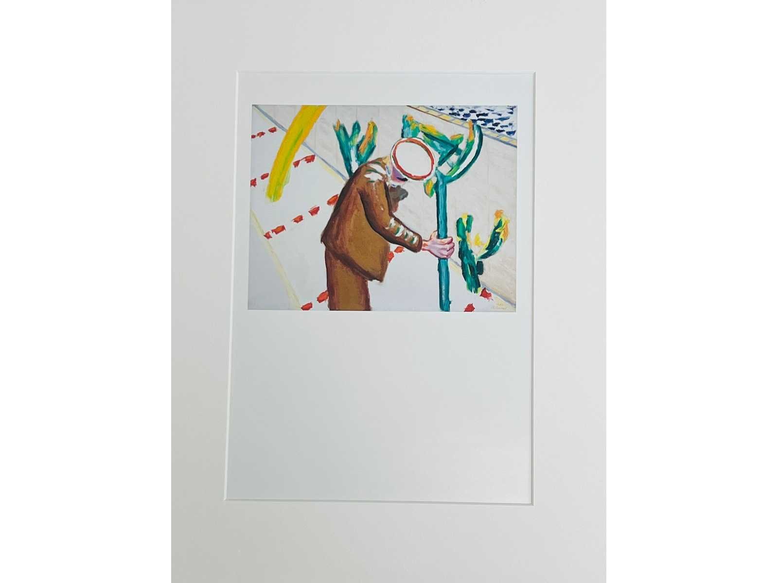 Uitgebracht op 500 exemplaren ter gelegenheid van de tentoonstelling "De Wereld van Roger Raveel" in de lokettenzaal van het Vlaams Parlement te Brussel – ingelijst met passe-partout (30x40 cm) Nee Kunstenaar: Roger Raveel Titel van werk: vader plant een boompje in de witte ruimte van de aarde Techniek: offset Oplage: 500 Hoogte: 40cm Breedte: 30cm Frame: true