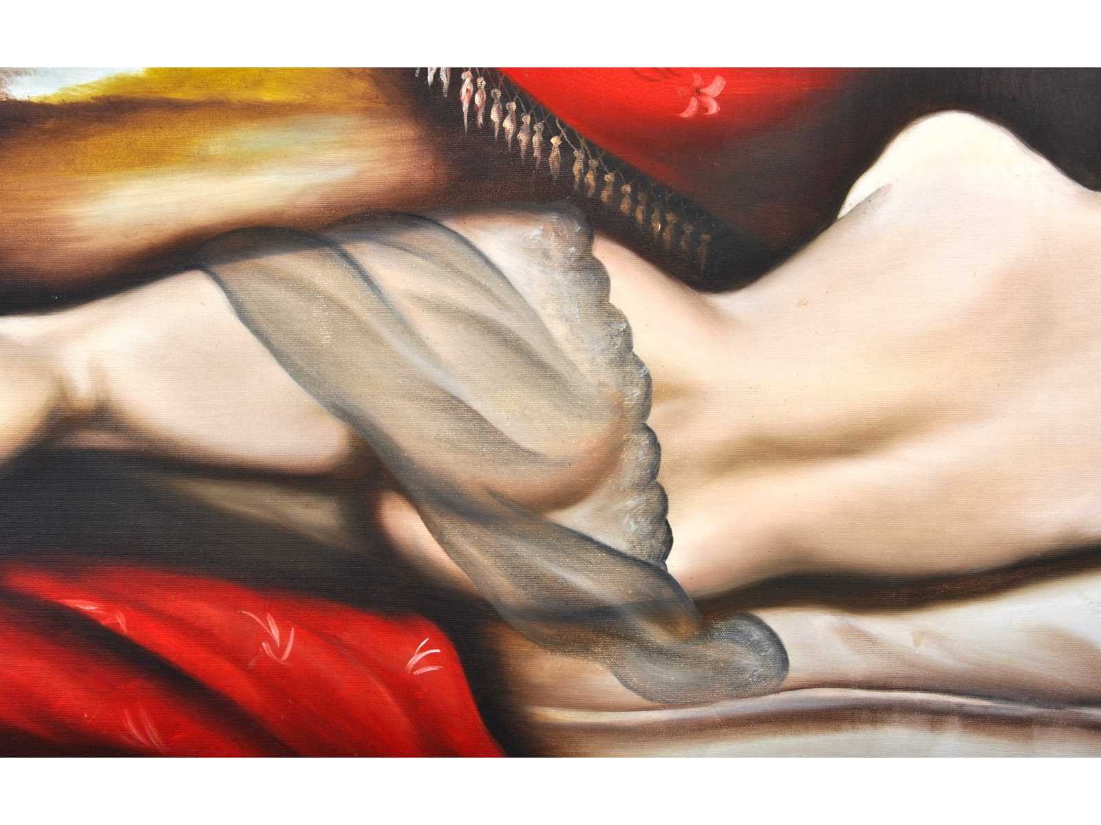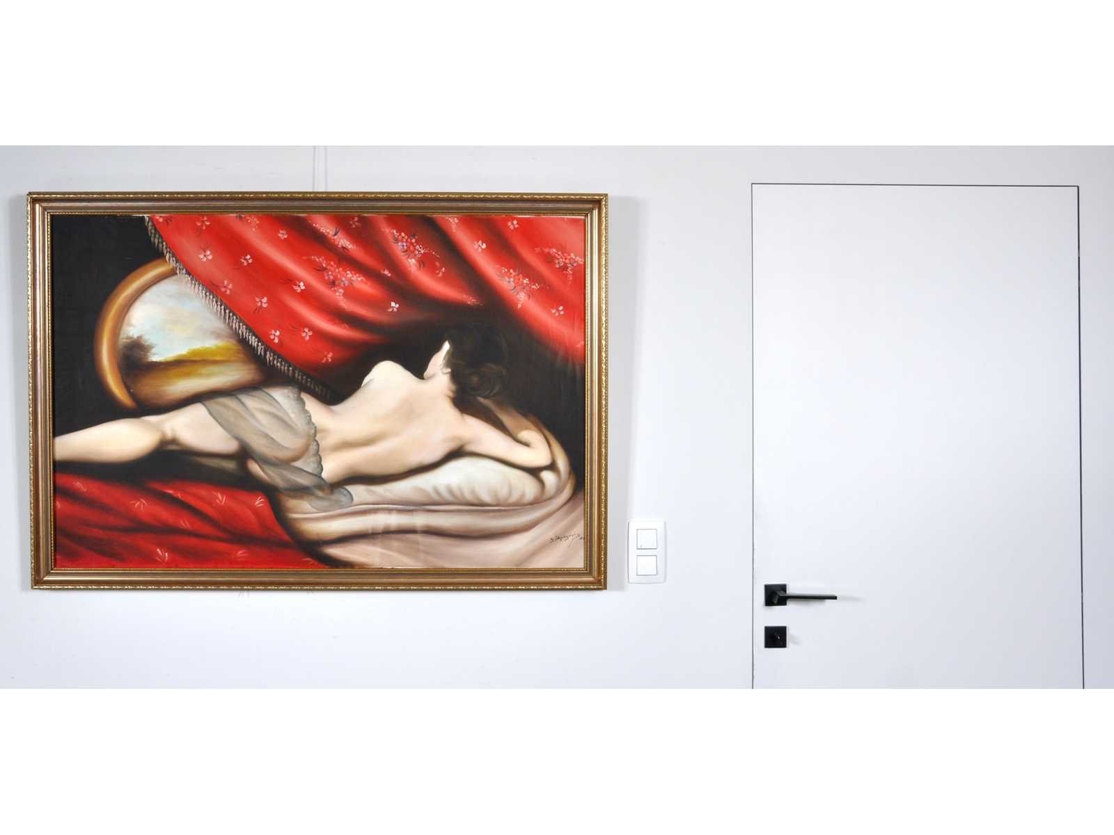 Prachtig, zwoel schilderij, het ademt intimiteit, rust en een bijna filmische sfeer - Ingelijst - Galerieprijs: 2.500 € Nee Kunstenaar: G. Spagnolo Titel van werk: Reclining Woman by the Window Datering: 1979 Techniek: olieverf op doek Handtekening/oplage: true Gesigneerd: Gesigneerd en gedateerd Hoogte: 90cm Breedte: 120cm Hoogte incl. lijst: 90cm Breedte incl. lijst: 130cm Frame: true