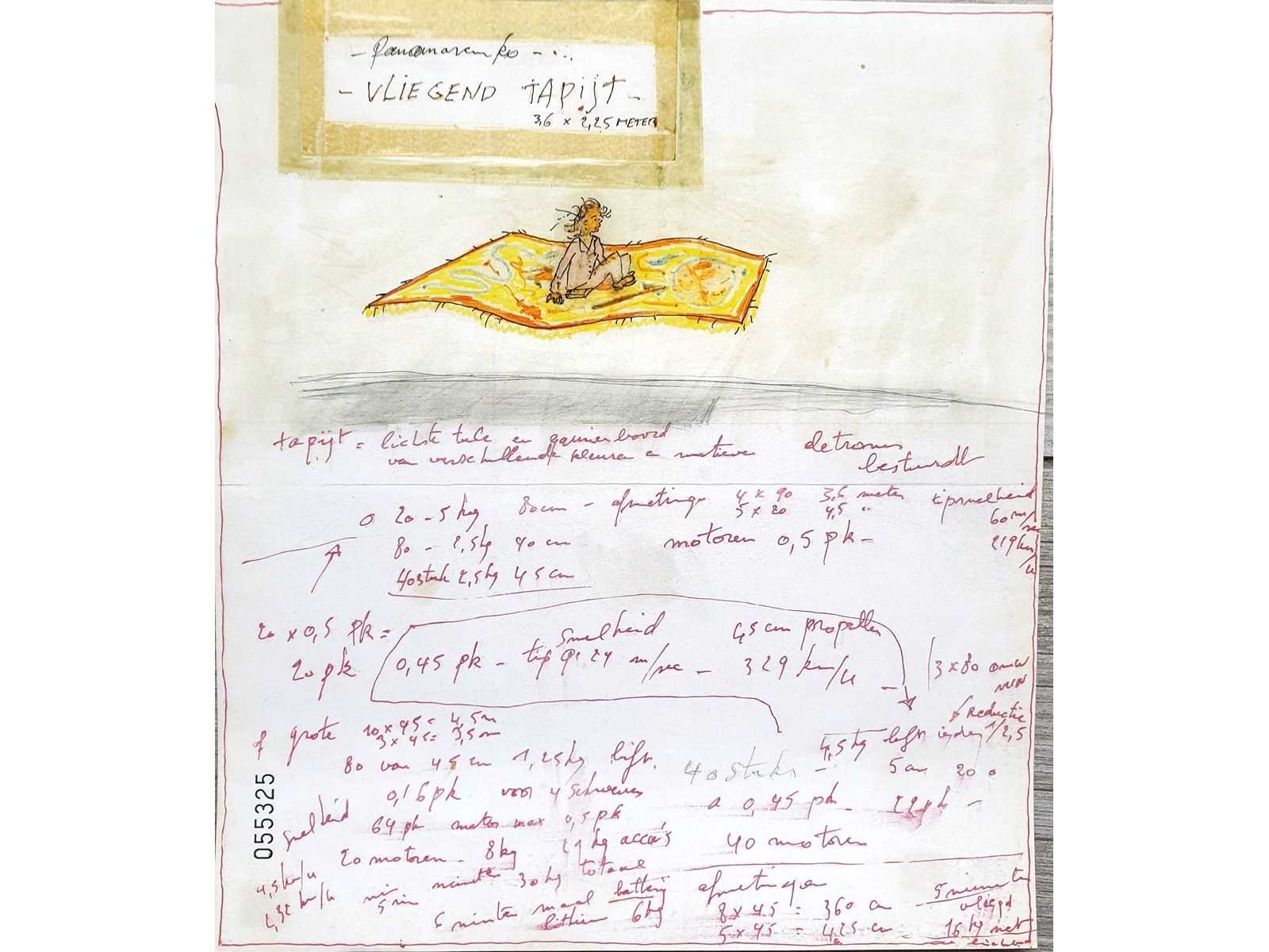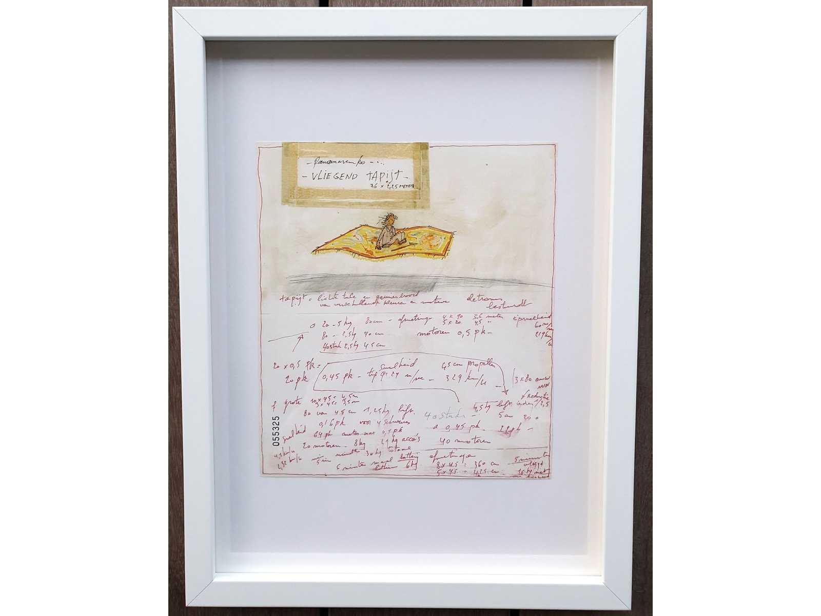 Offset print op hoogwaardig papier (GardaPat 13 Kiara papier van 150 g), gesigneerd in de druk, machinaal genummerd (055325). Uitgever: GVA in samenwerking met Panamarenko Collectief - ingelijst Nee Kunstenaar: Panamarenko (Antwerpen 1940-2019) Titel van werk: Vliegend tapijt Techniek: Offset Handtekening/oplage: false Hoogte: 24cm Breedte: 21cm Frame: true