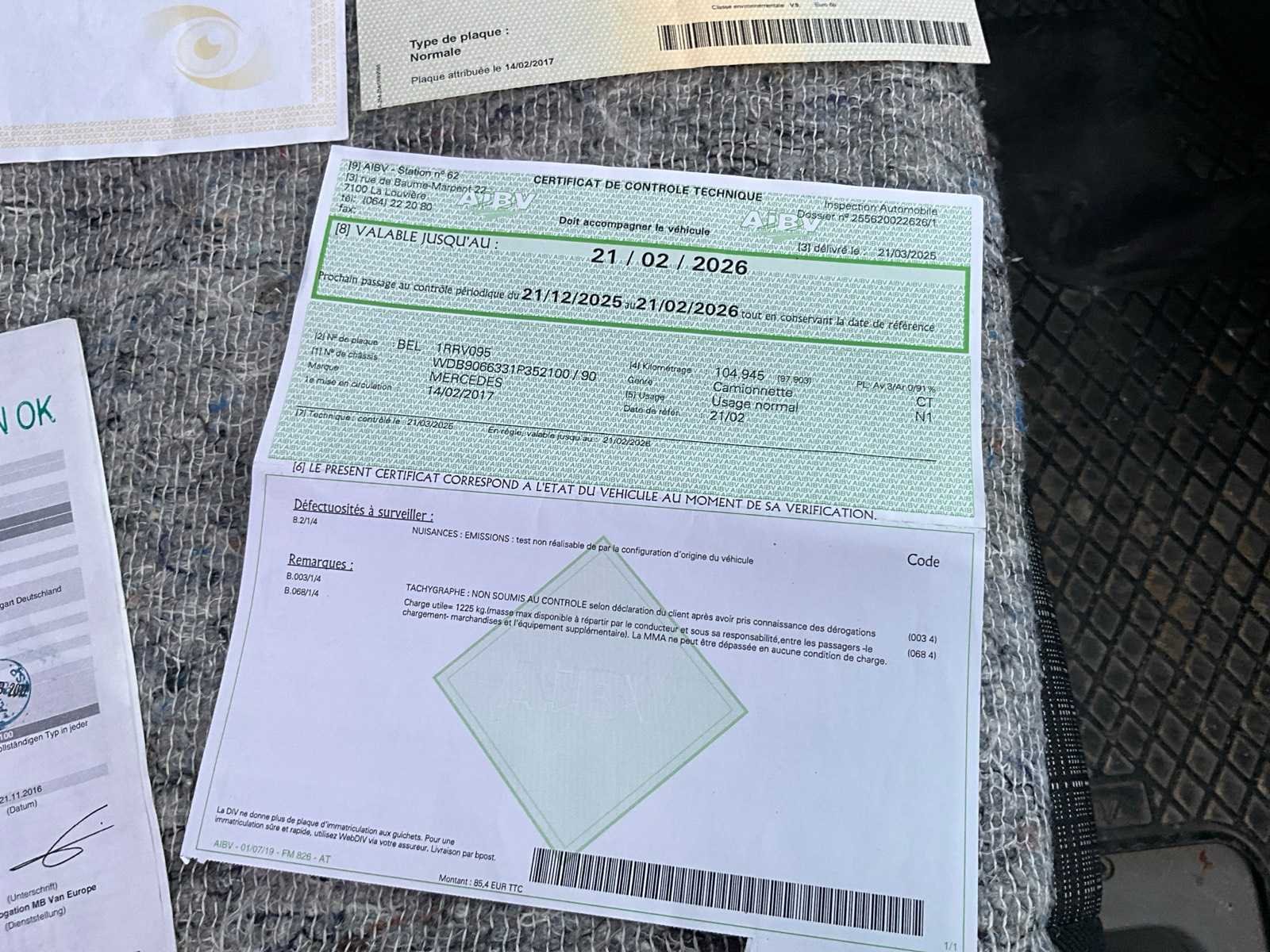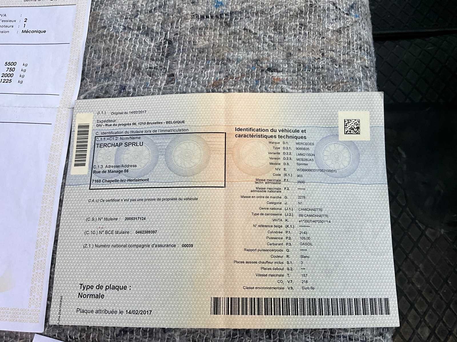 Aanwezige boorddocumenten:inschrijvingsbewijs deel I en II, keuringsbewijs, identificatieverslag Nee Merk: Mercedes-Benz Type: Sprinter 314 cdi Bouwjaar: 2017 Afgelezen kilometerstand: 115232km Cilinderinhoud: 2143cc Vermogen (kW): 105kW Brandstof: diesel Chassisnummer: WDB9066331P352100 Datum eerste toelating: 14/02/2017 Aantal zitplaatsen: 3 Transmissie: Handgeschakeld Emissieklasse: Euro 6b Aantal sleutels: 2 Start en rijdt: Ja Keuringsrapport geldig tot: 21/02/2026 Vavato voert geen technische keuring uit.: true Inschrijvingsbewijs - deel 1 : Aanwezig Inschrijvingsbewijs - deel 2: Aanwezig