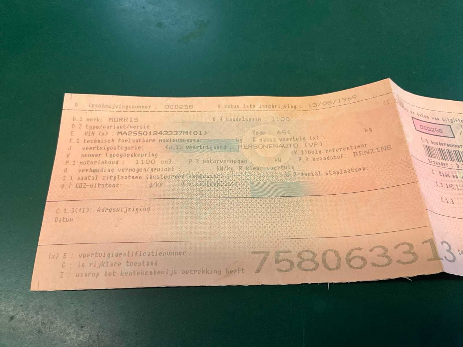 Start en rijdt maar heeft eerst volledig onderhoud nodig Nee Merk: Morris Type: Minor 1100 Bouwjaar: 1969 Chassisnummer: MA25501243337M Afgelezen mijlenstand: 57544mi Brandstof: Benzine Datum eerste inschrijving: 13/08/1969 Transmissie: Manueel Aantal deuren: 2 Aantal zitplaatsen: 5 Aantal sleutels: 1 Startinformatie: Start en rijdt Cilinderinhoud: 1100 Inschrijvingsbewijs - deel 1 : Aanwezig Inschrijvingsbewijs - deel 2: Aanwezig