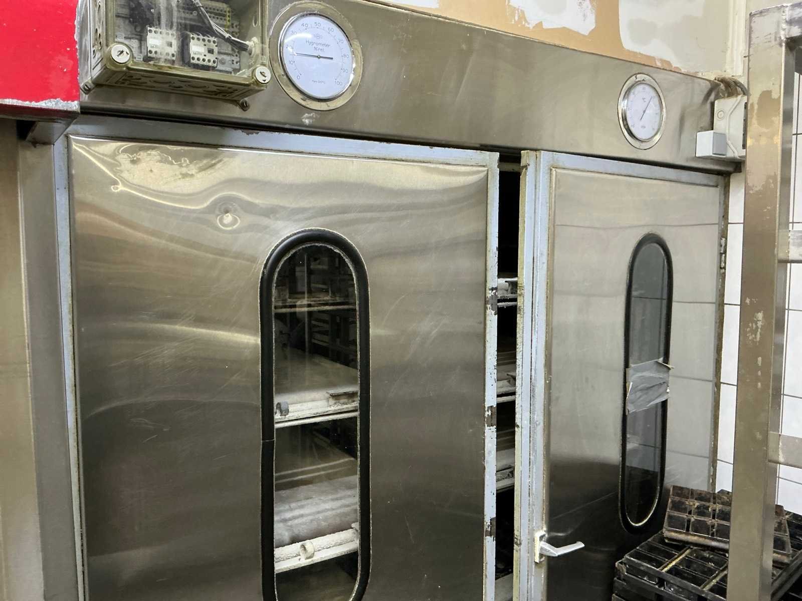 Voorzien van 2 deuren, Inhoudende 2 broodrijskarren, Dient door klant zelf gedemonteerd te worden voor afgifte Nee Kamer afmeting l: 1900mm Kamer afmeting b: 2500mm Kamer afmeting h: 1850mm Aansluiting: 380V