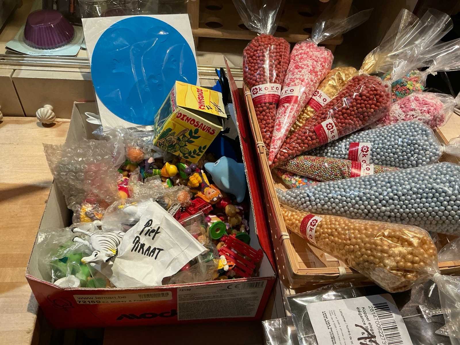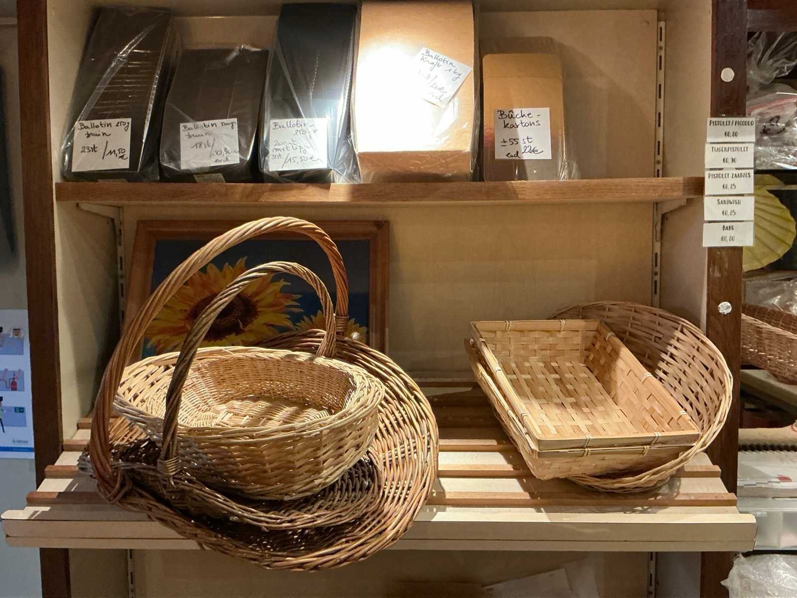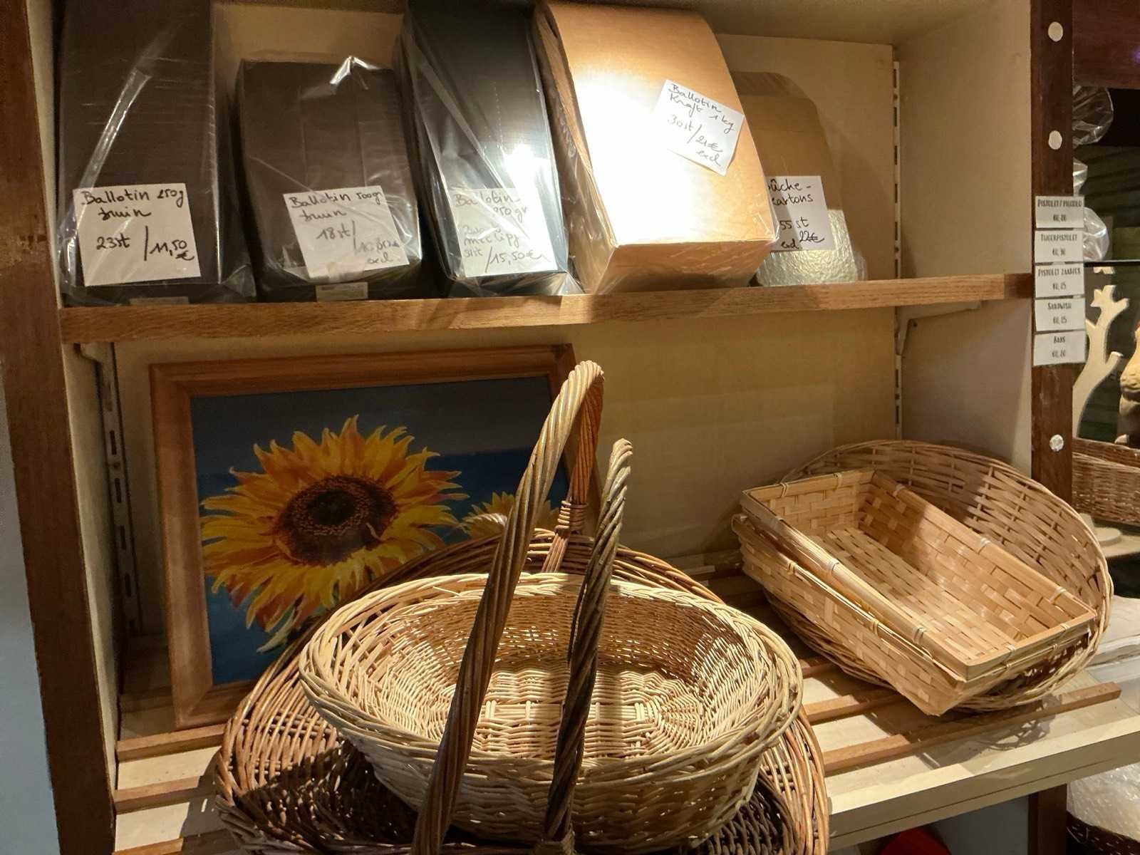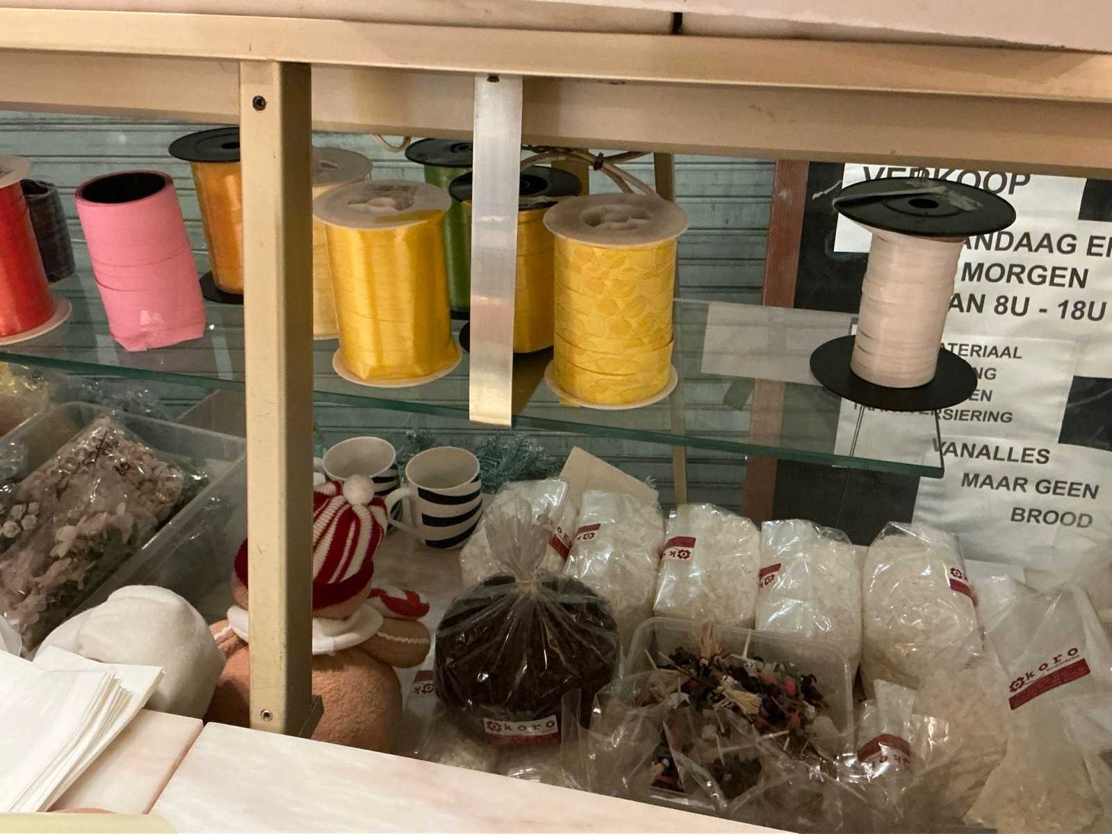 Volledige inhoud van bakkerswinkel en verpakkingsvoorraad achterruimte 1 waaronder bestaande uit: 1 digitale weegschaal OHAUS RE series, 1 dubbelzijdig kriijtstoepbord, Partij diverse verpakking en verpakkingslinten, 2 piece-montées, enige glazen potten en vazen, Diverse decoratie, enige rieten manden en enig speelgoed, Uitgezonderd genummerde kavels en eigendomsvoorbehoud, Afgifte volgens aanwijzing Nee Model: Partij