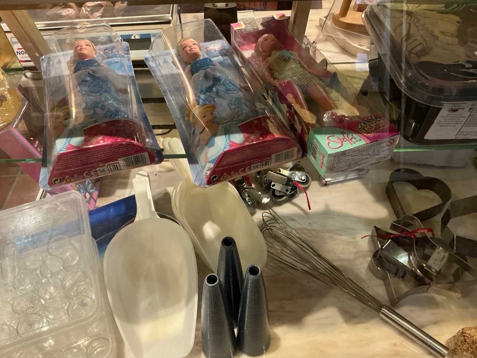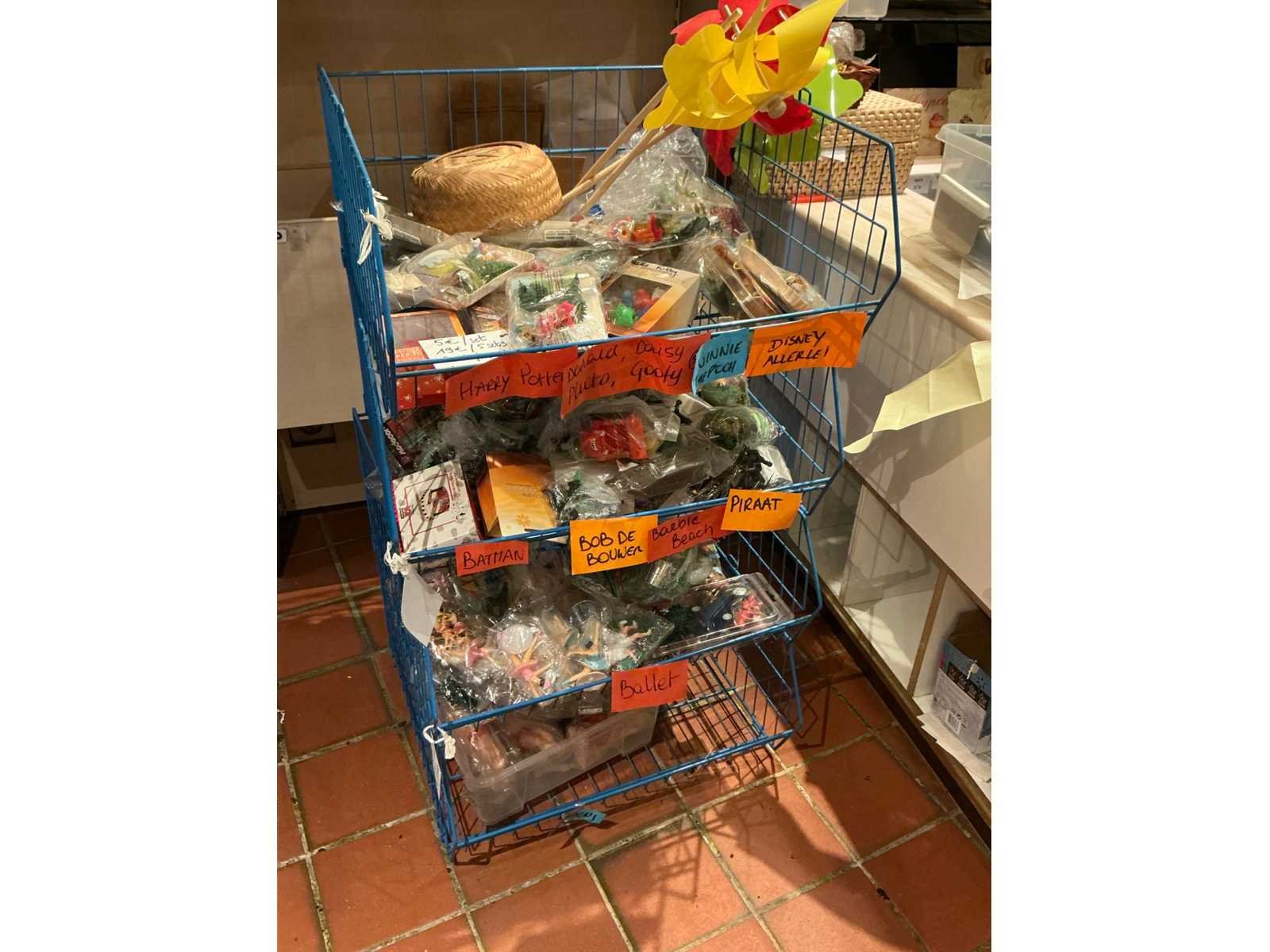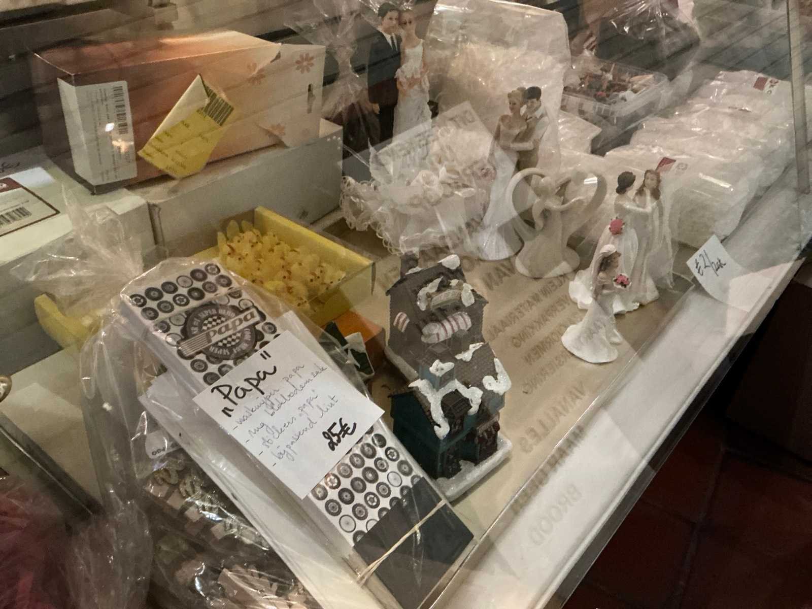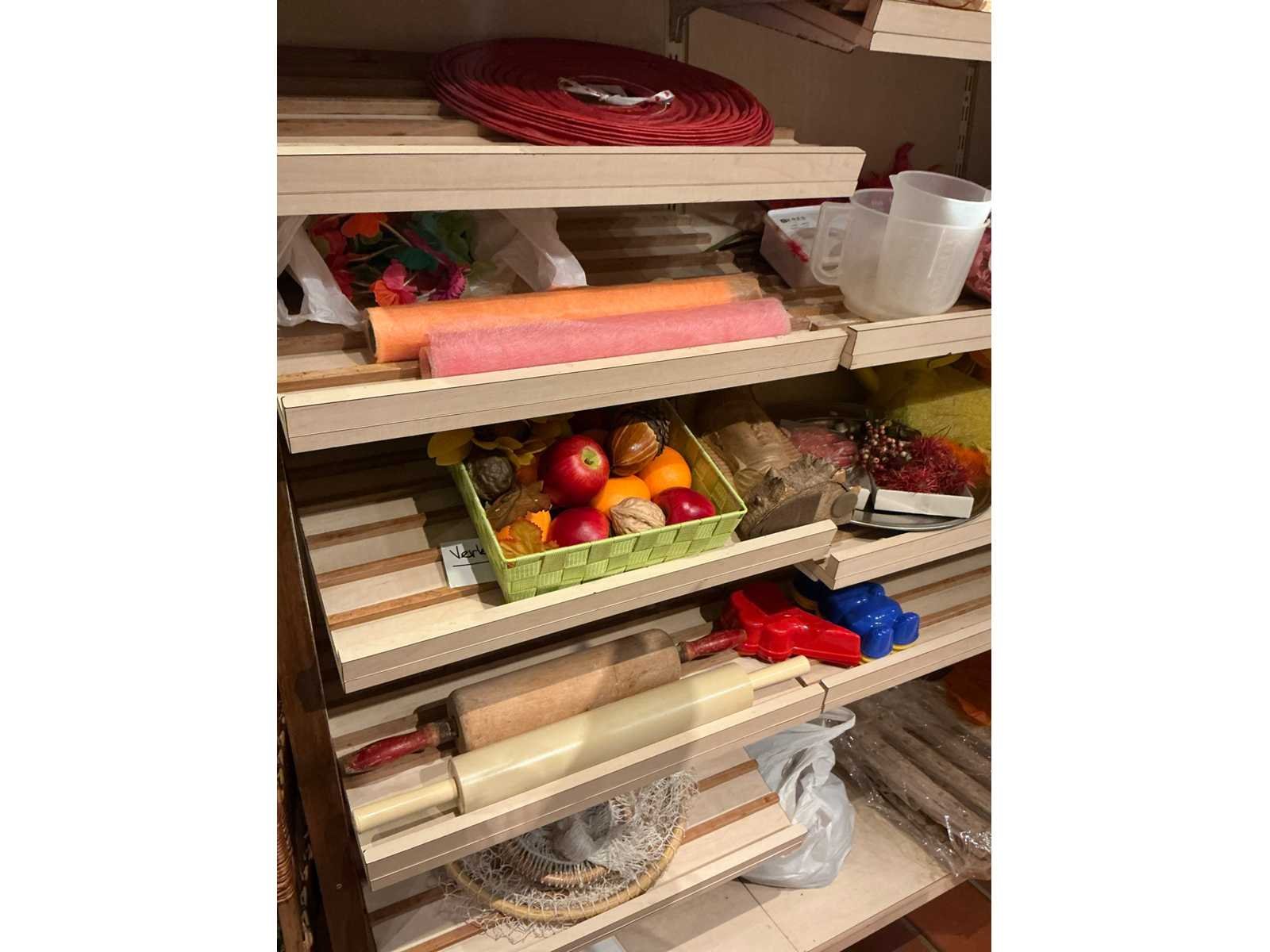 Volledige inhoud van bakkerswinkel en verpakkingsvoorraad achterruimte 1 waaronder bestaande uit: 1 digitale weegschaal OHAUS RE series, 1 dubbelzijdig kriijtstoepbord, Partij diverse verpakking en verpakkingslinten, 2 piece-montées, enige glazen potten en vazen, Diverse decoratie, enige rieten manden en enig speelgoed, Uitgezonderd genummerde kavels en eigendomsvoorbehoud, Afgifte volgens aanwijzing Nee Model: Partij