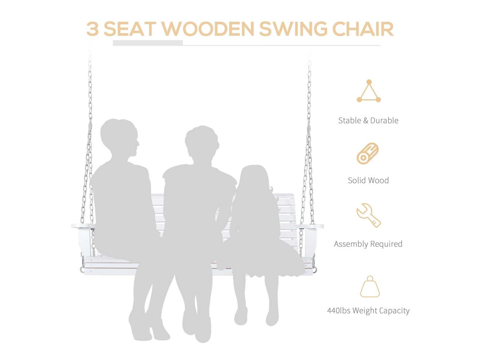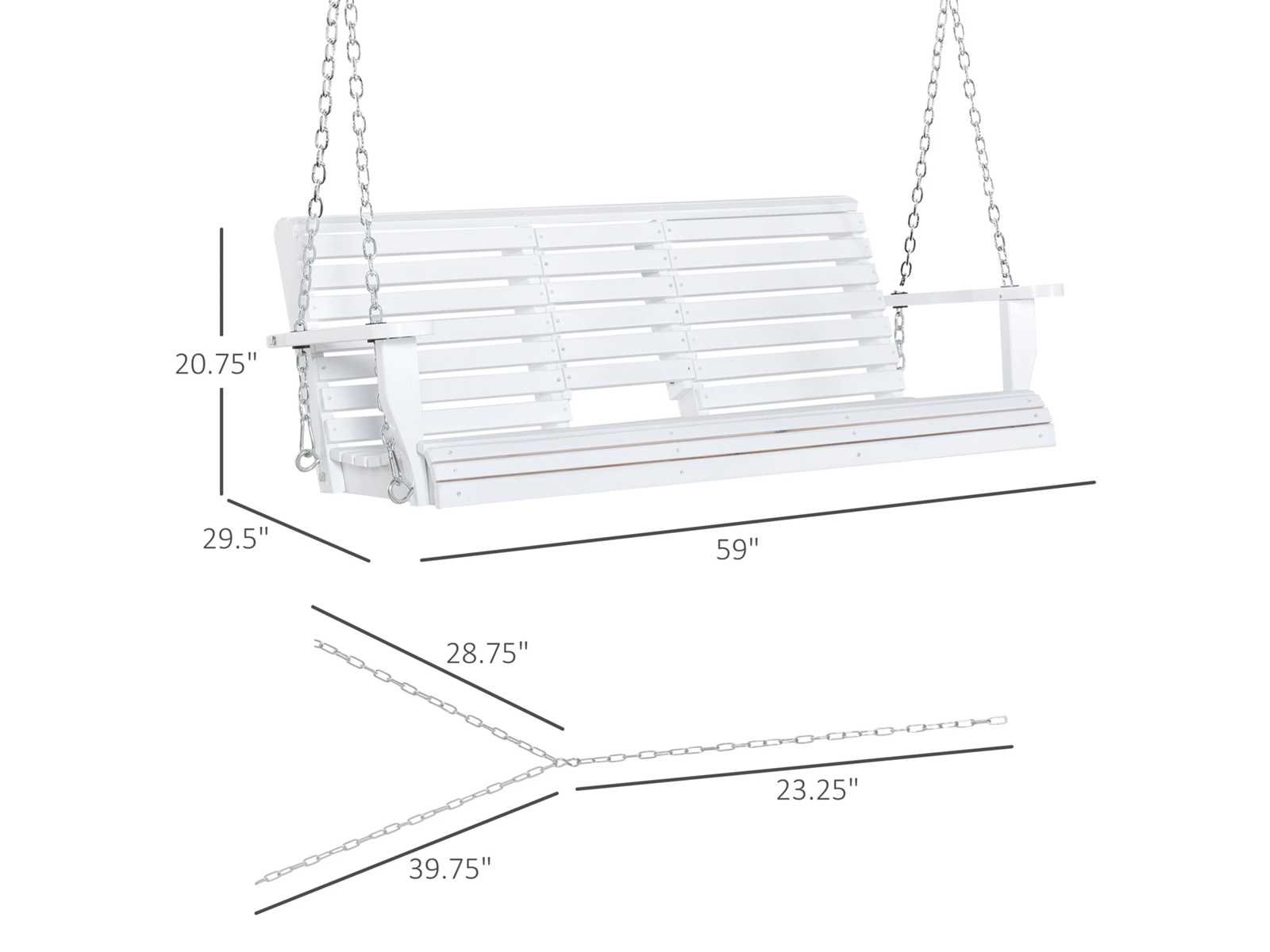 Spécification: - Couleur : Blanc - Matériau : Bois de sapin Dimensions hors tout : 150 cm (L) x 75 cm (P) x 53 cm (H) - Dimensions de l'assise : 128 cm (L) x 49 cm (P) - Hauteur du dossier : 19,75" - Largeur du dos : 46 pouces Dimensions de l'accoudoir : 10,8 cm (L) x 64,1 cm (l) x 1,9 cm (H) - Dimensions de la table basse : 29,8 cm (L) x 34,9 cm (l) - Dimensions du porte-gobelet : ?2,75 po x 3,5 po H - Longueur des chaînes en acier : 3,3 pi, 7,5 pi - Capacité de charge : 200 kg Non