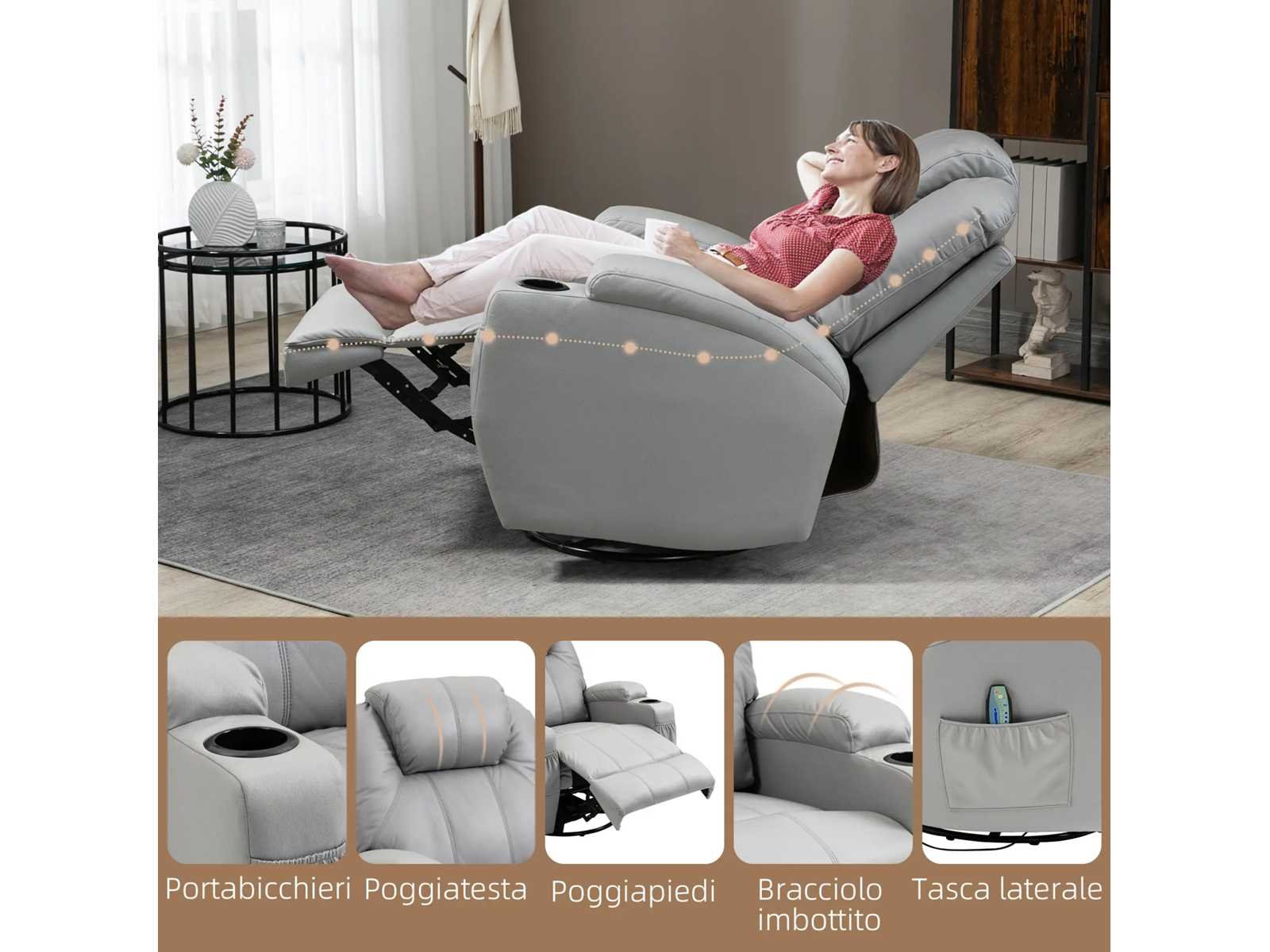 Spécifications: - Couleur : Gris - Matériaux : PU, mousse, métal - Dimensions totales : 89L x 99P x 106H cm - Dimensions inclinées : 89L x 164P x 85H cm - Dimensions du siège : 57L x 53P x 51H cm - Dimensions du dossier : 68L x 74P x 26H cm - Dimensions de la poche : 13P x 18H cm - Écart : 80 cm (entre la base et le mur en position inclinée) - Convient aux utilisateurs de taille =1.9m - Longueur du câble d'alimentation : 1.5m - Entrée : 100-240V, 50/60Hz, 2A - Sortie : DC 12V, 0.6A, 7.2W - Capacité de poids : 150kg Non