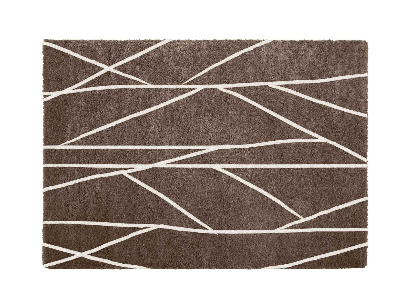 Tapis shaggy berbère lignes asymétriques - 160 x 230 cm - marron et blanc