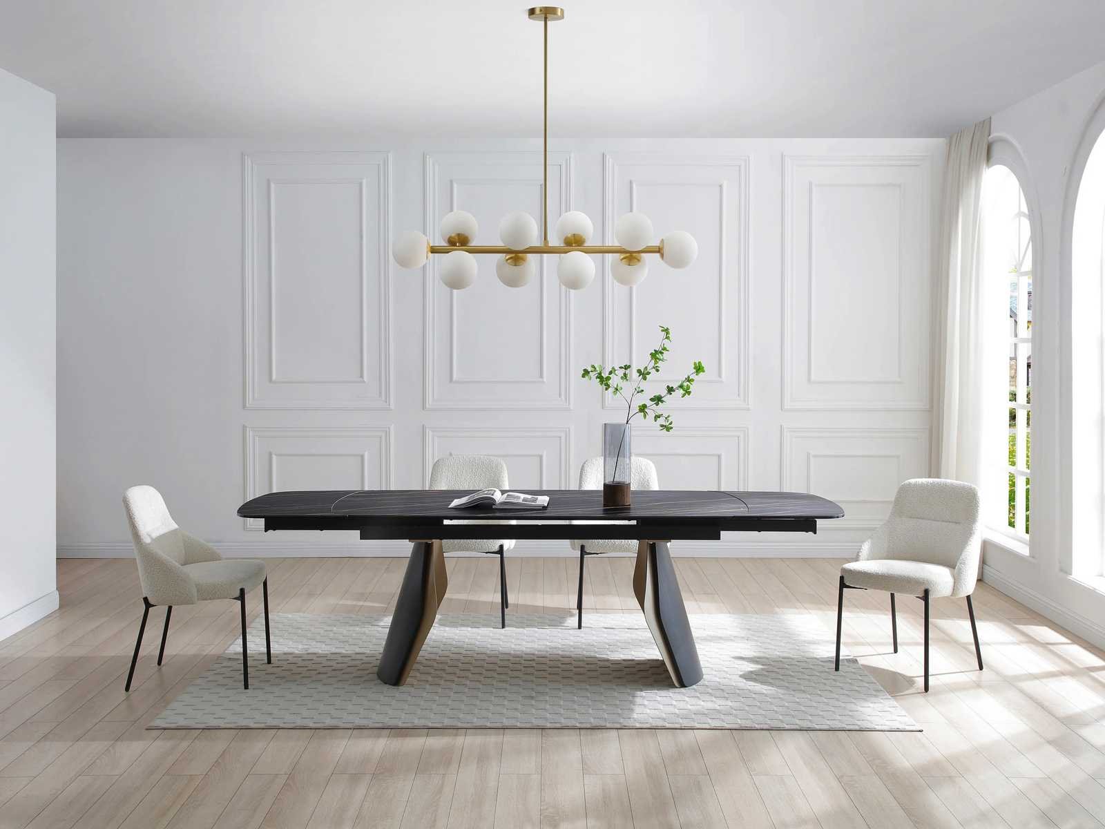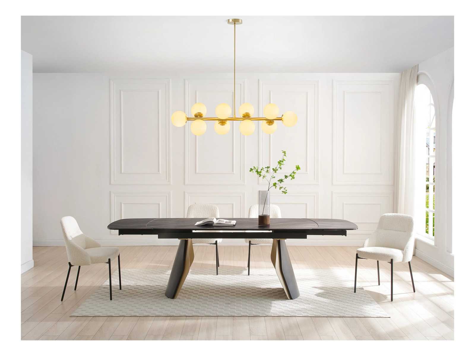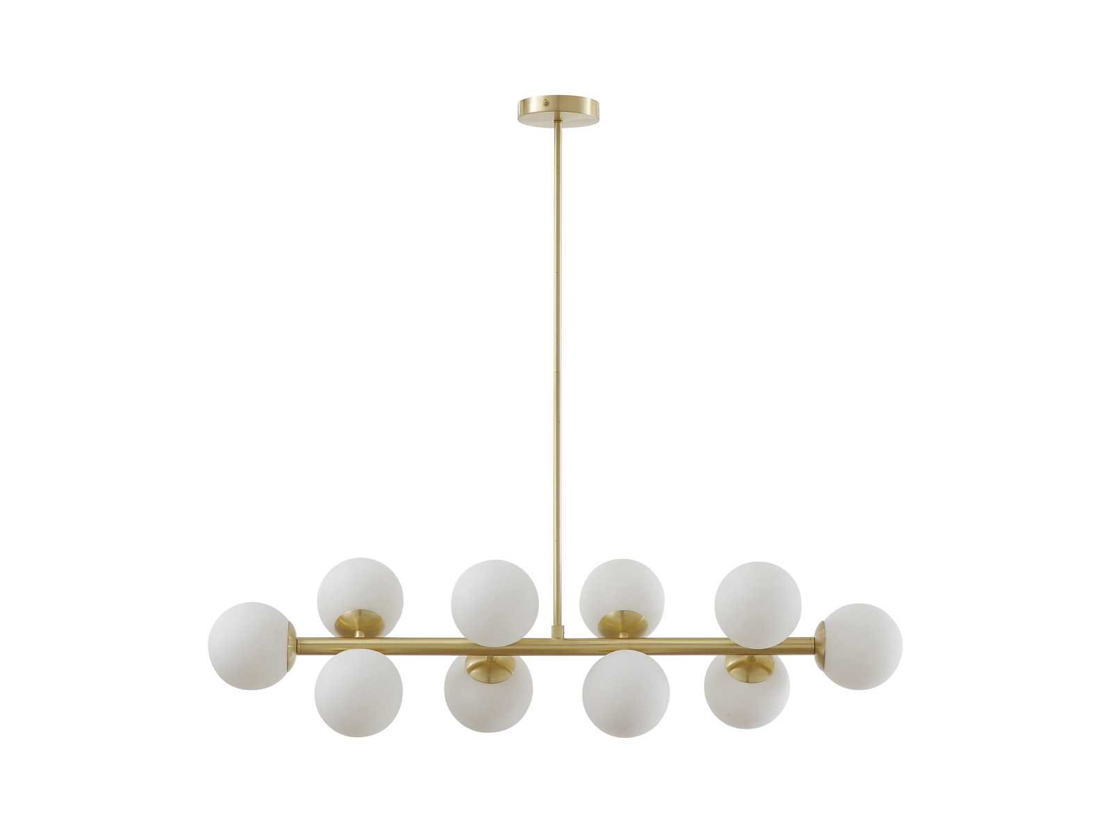 Lustre en métal et verre blanc - 10 globes - l. 94 x p. 23 x h. 88 cm - doré