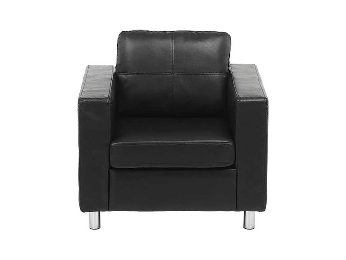 Caractéristiques Couleur (nuance) : Noir Matière : Simili Matière (Piètement) : Métal Structure : Bois, Contreplaqué Nombre de places : 1 place Garnissage de l'assise : Mousse polyuréthane, Mousse polyuréthane recyclée Densité assise : 50 kg/m³ Suspension de l'assise : Ressorts Nosag, Sangles élastiques entrecroisées Garnissage du dossier : Mousse polyuréthane Densité dossier : 15 kg/m³ Avec accoudoirs Charge maximale supportée : 120 kg Livré monté (sauf pieds et/ou poignées) Dimensions Longueur : 86 cm Hauteur : 77 cm Profondeur : 75 cm Hauteur d'assise : 41 cm Profondeur d'assise : 47 cm Non