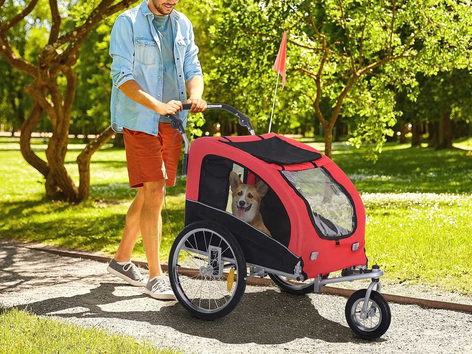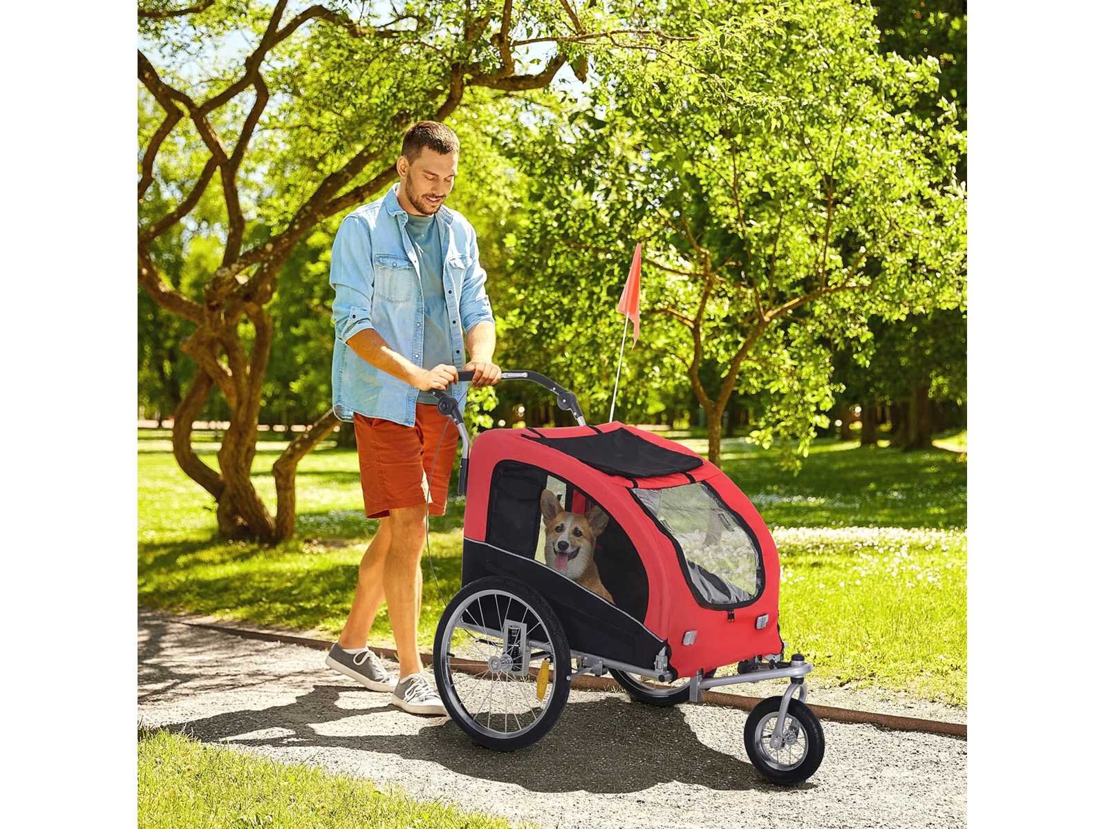 Spécifications: - Couleurs principales : rouge et noir - Matériaux principaux : polyester oxford imperméabilisé, PU et acier - Dim. totales mode jogger : 155L x 83l x 108H cm - Dim. espace intérieur : 77L x 60l x 56H cm - Dim. totales mode remorque : 126L x 83l x 108H cm - Diamètre roue avant : 25 cm - Diamètre roue arrière : 51 cm - Charge max. recommandée : 30 Kg Non