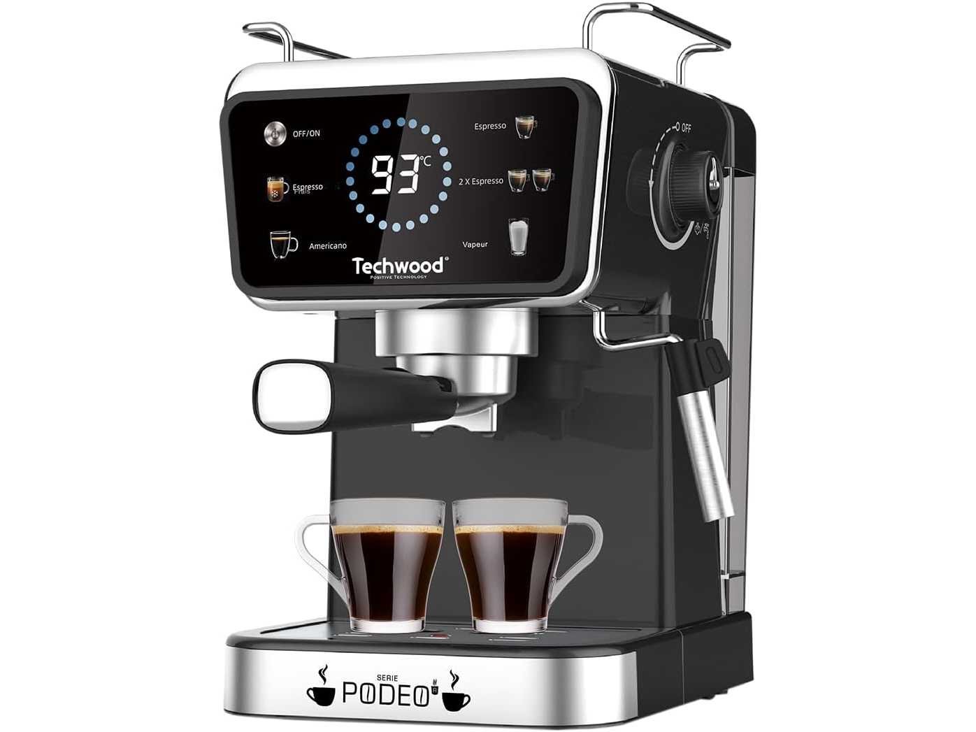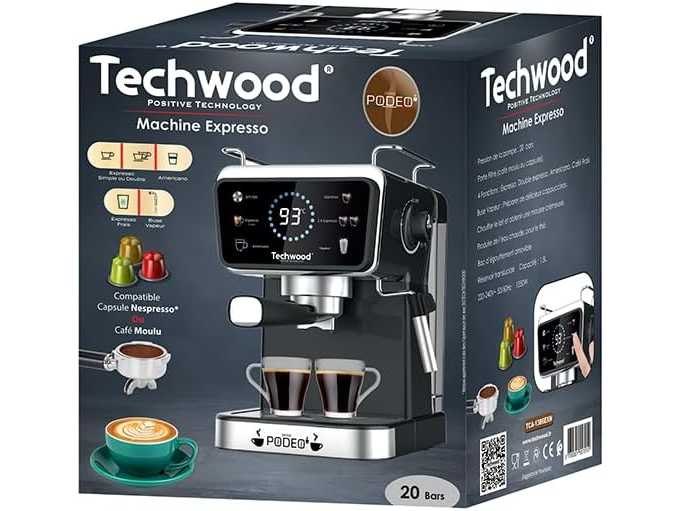 Marque Techwood Couleur Noir Dimensions du produit 33,2P x 38,5l x 25,4H centimètres Caractéristique spéciale Arrêt automatique Type de cafetière Machine à espresso Usages spécifiques pour le produit Espresso Usages recommandés pour le produit Maison Mode de fonctionnement Entièrement automatique Tension 240 Nom de modèle Machine Expresso TCA-1386EXN TECHWOOD Non